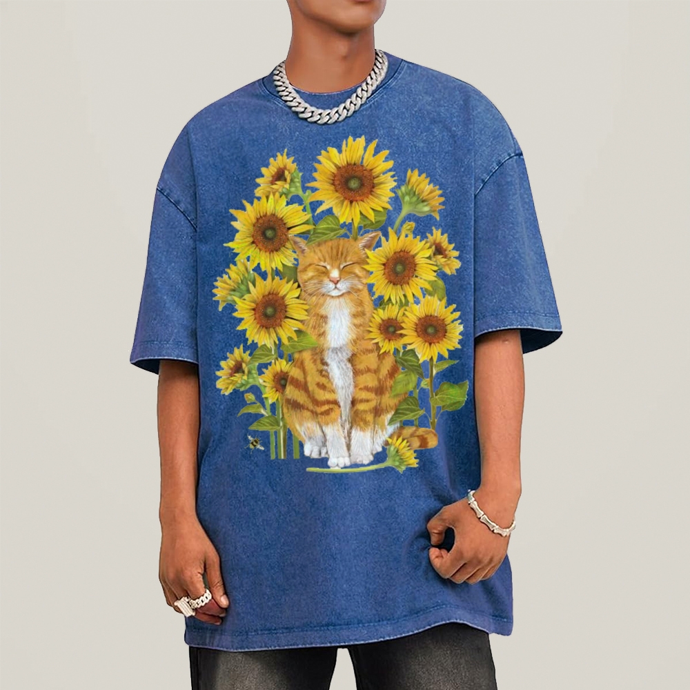 Sunflower Cat Unisex Vintage Washed Tee