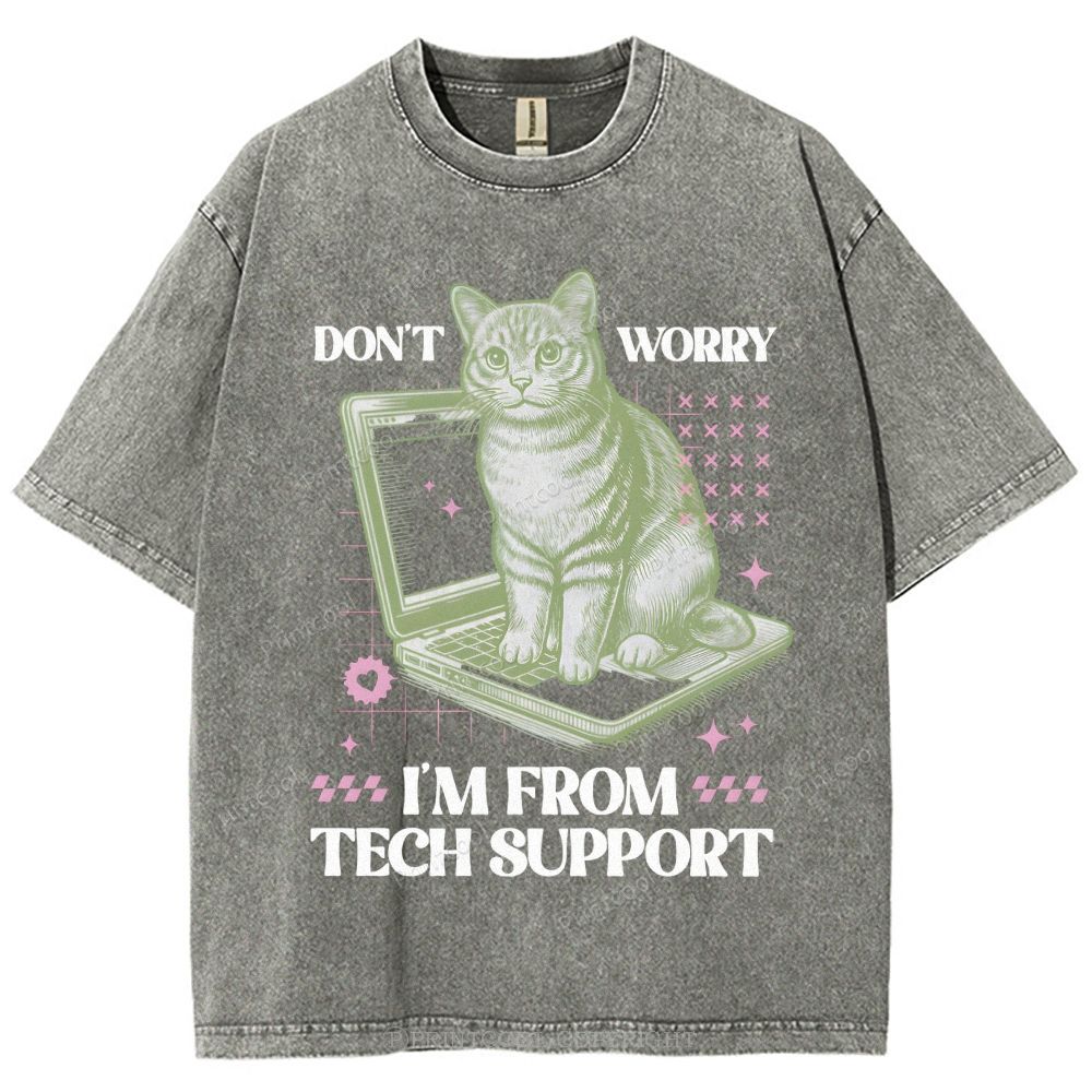 Tech Support Cat Laptop Humor Unisex Vintage Washed Tee