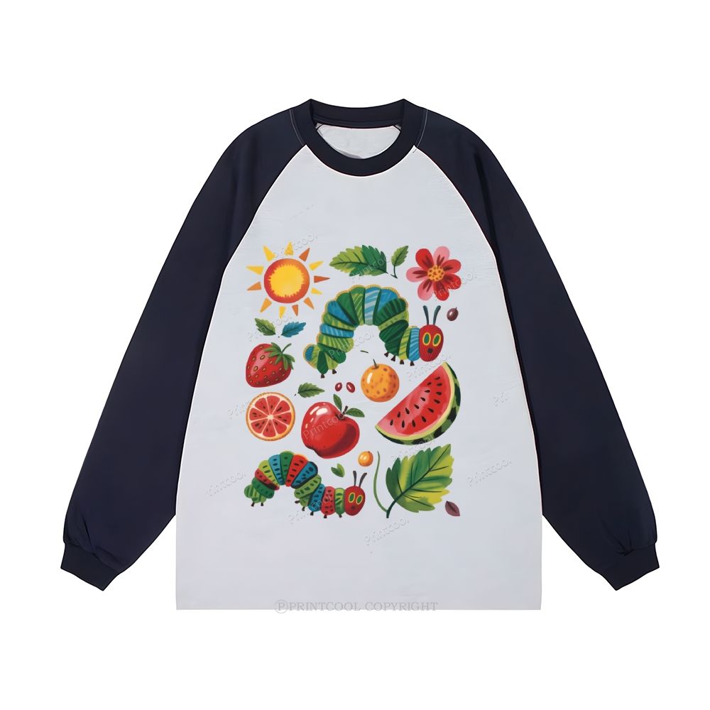 The Very Hungry Caterpillar’s Fruit Feast Unisex Personalized Customization Cotton Raglan Sweatshirt