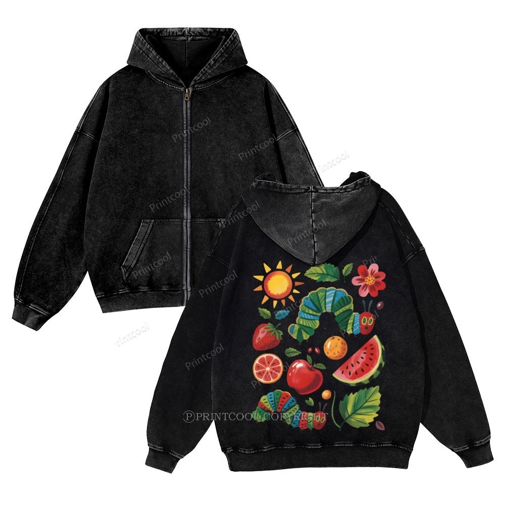 The Very Hungry Caterpillar’s Fruit Feast Unisex Washed Cotton Zip Up Hoodie