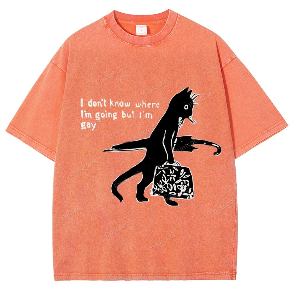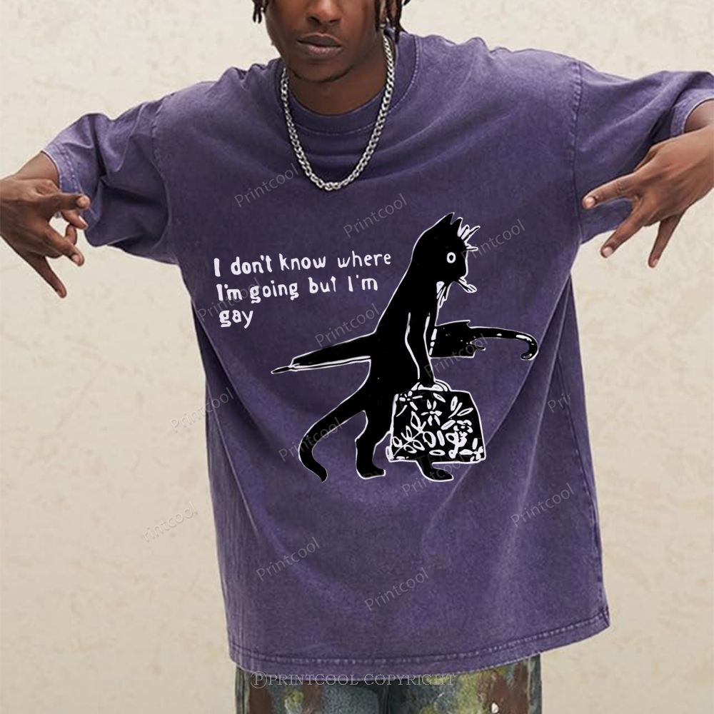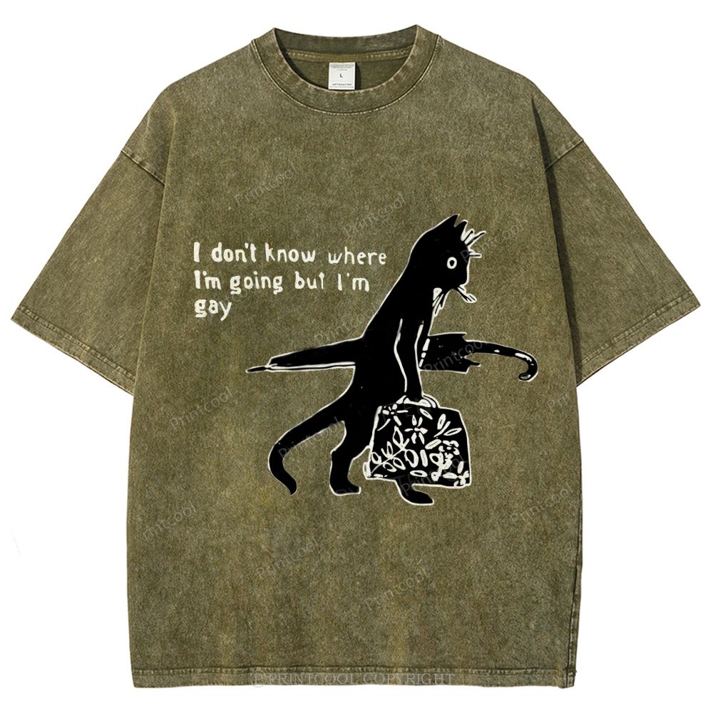 Traveling Gay Cat Meme Unisex Vintage Washed Tee
