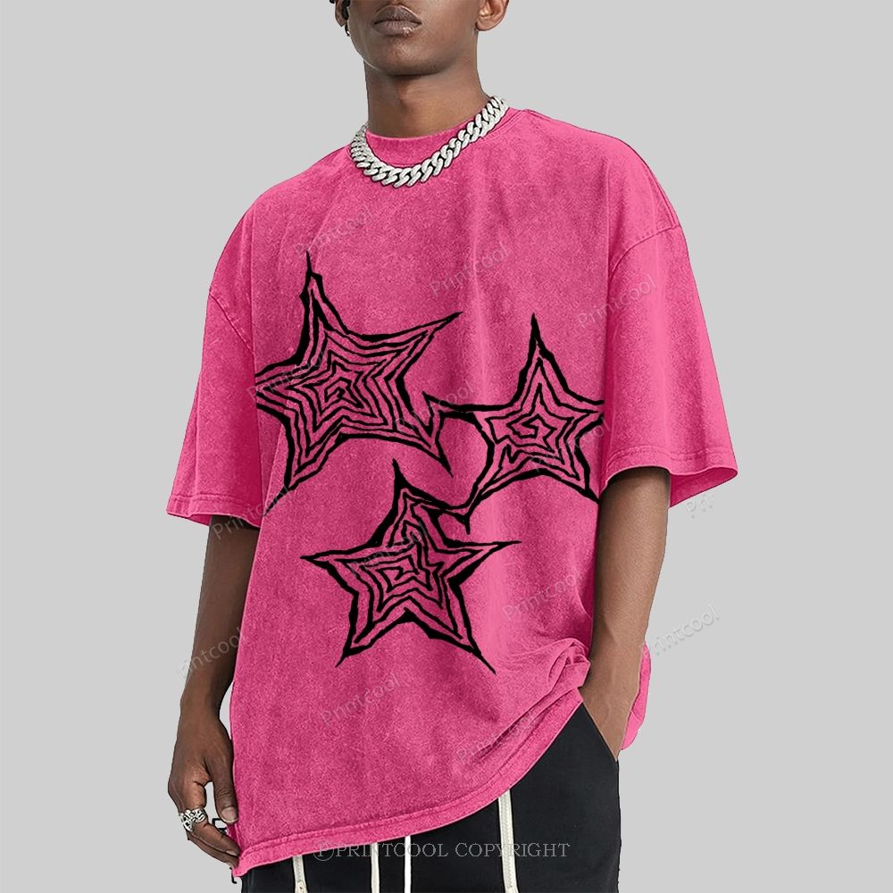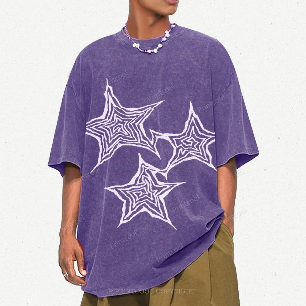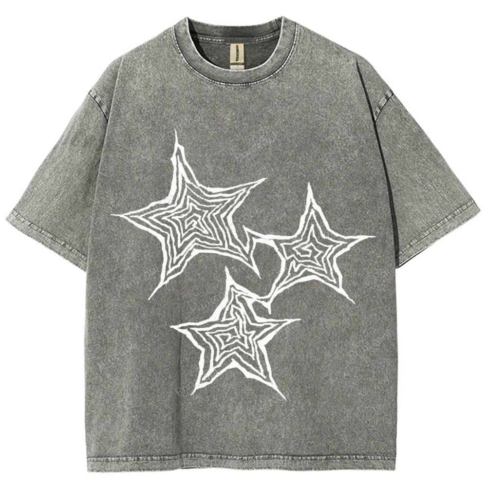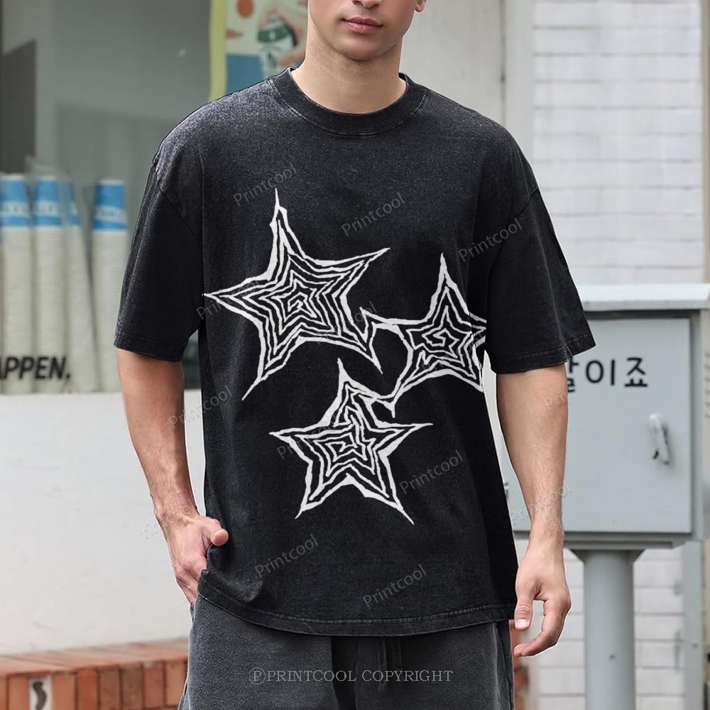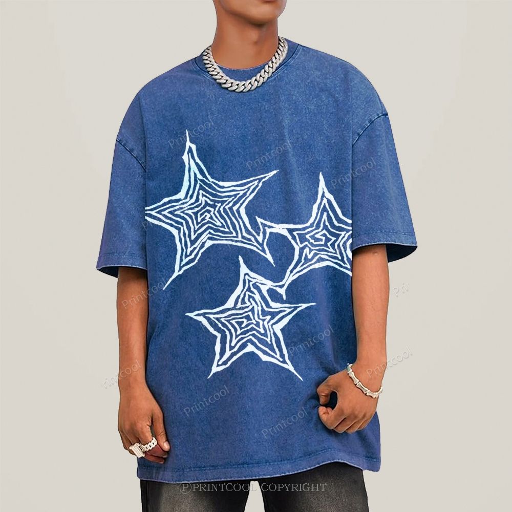 Trendy Geometric Star Print Unisex Vintage Washed Tee