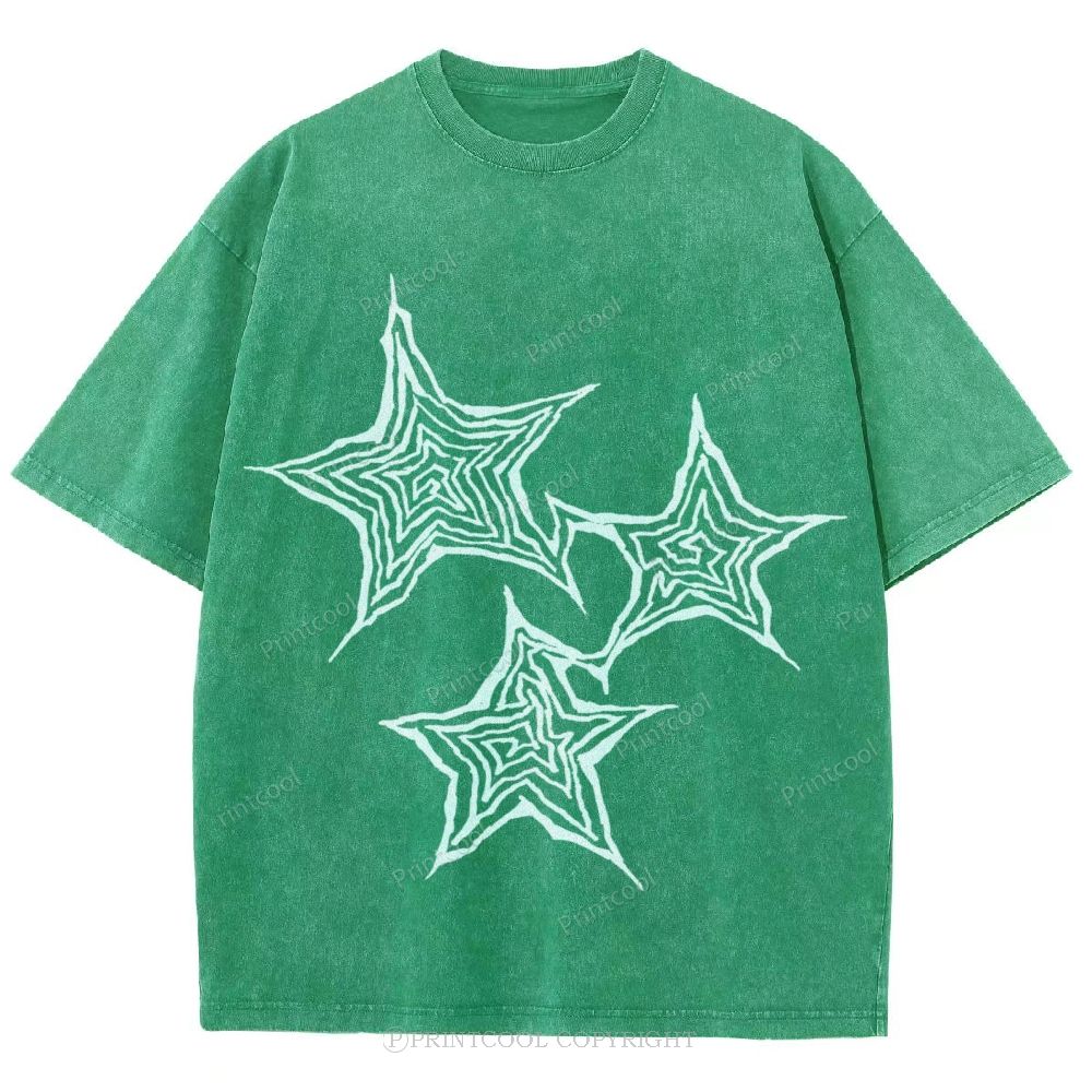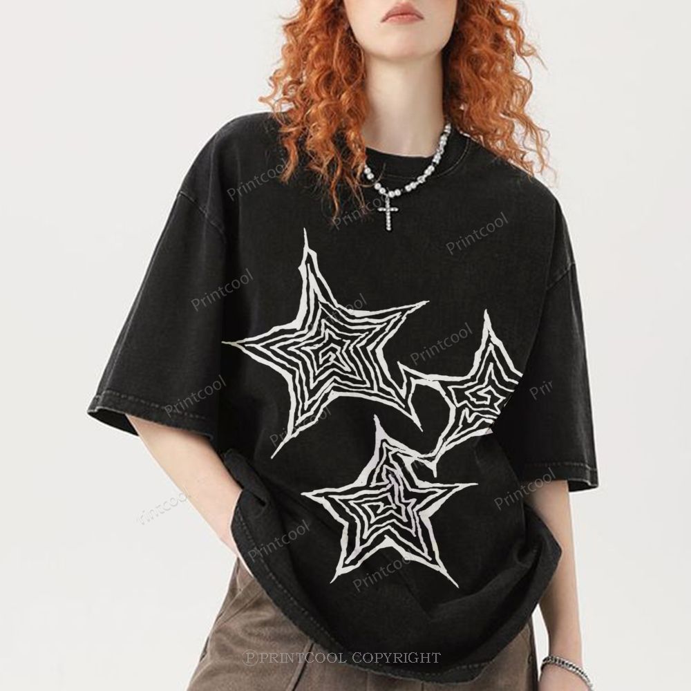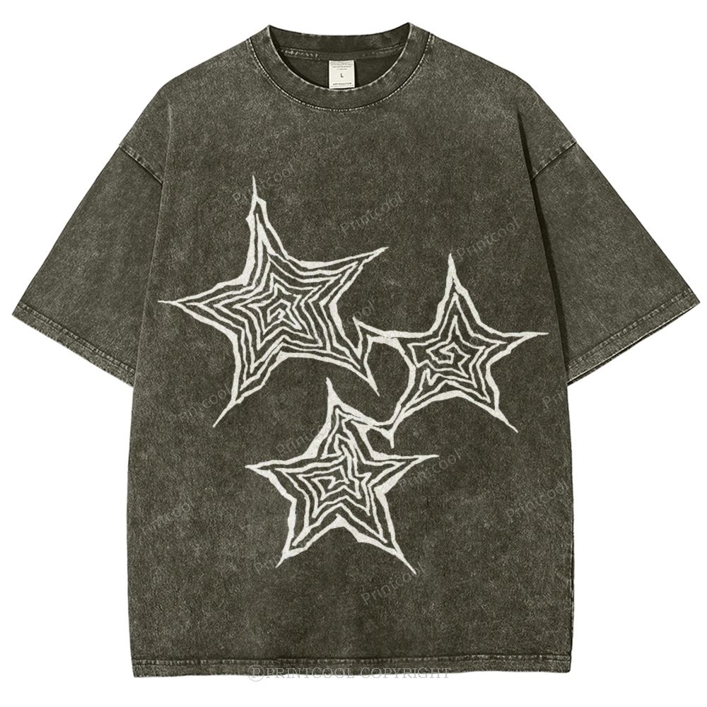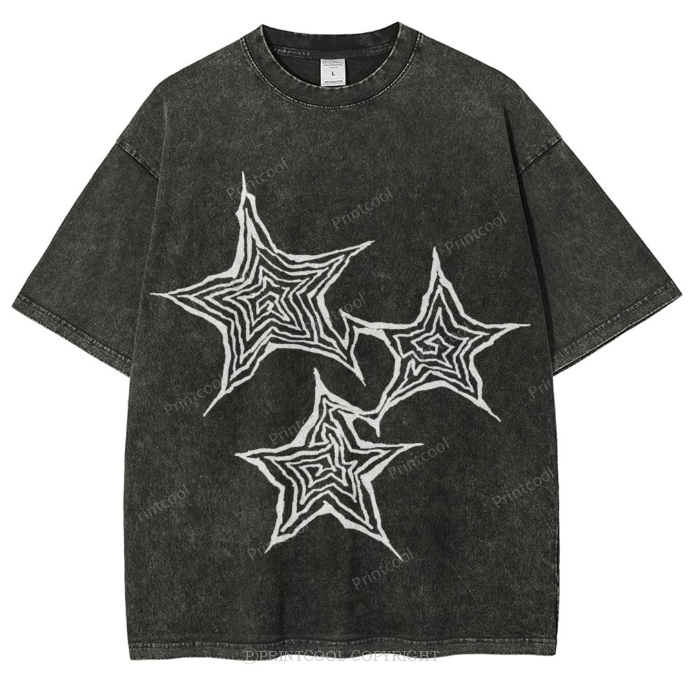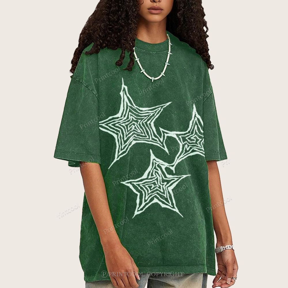Trendy Geometric Star Print Unisex Vintage Washed Tee