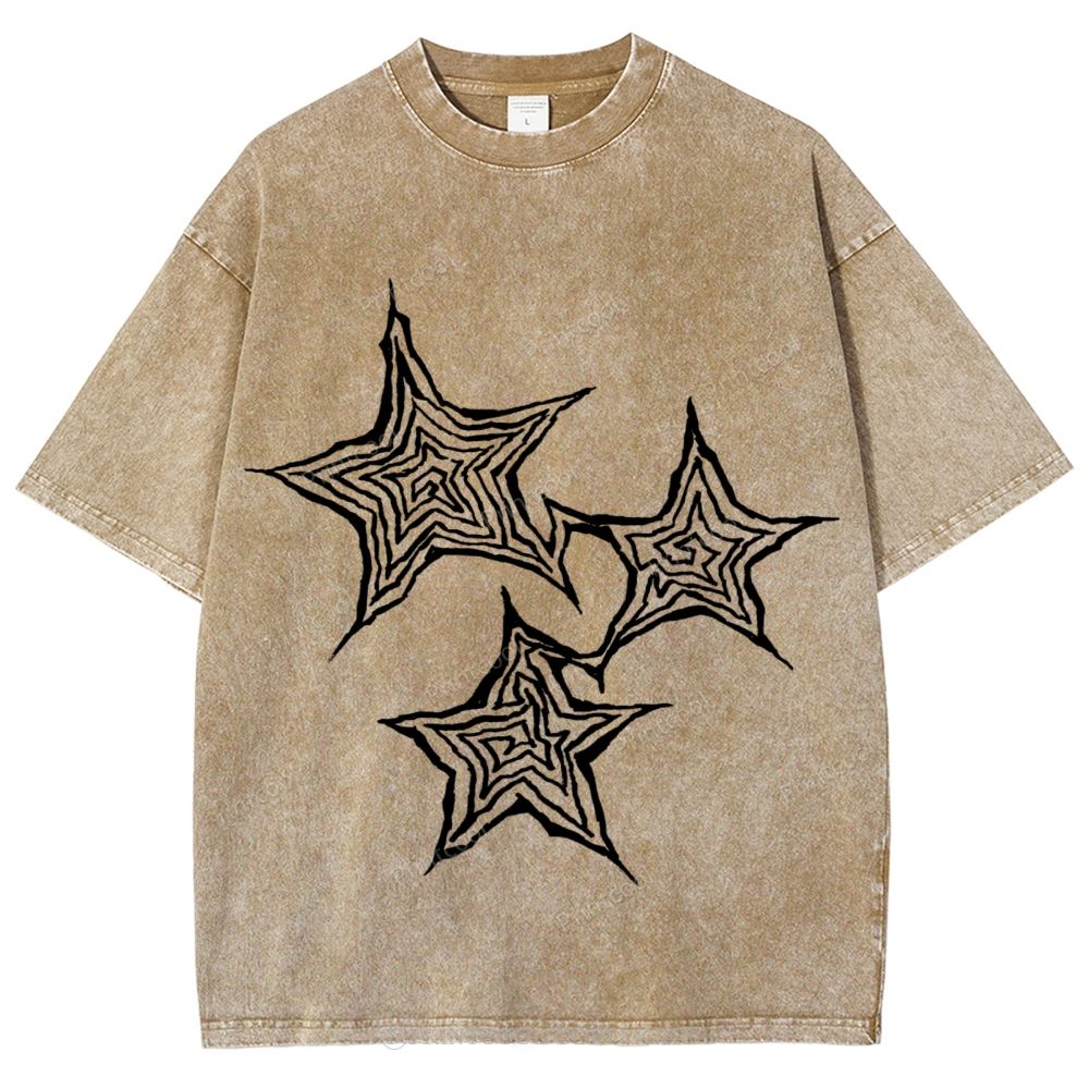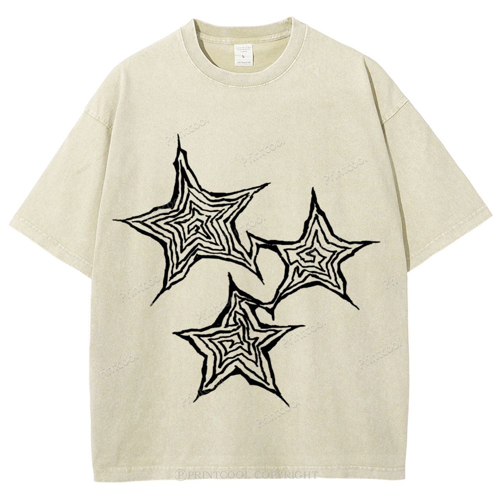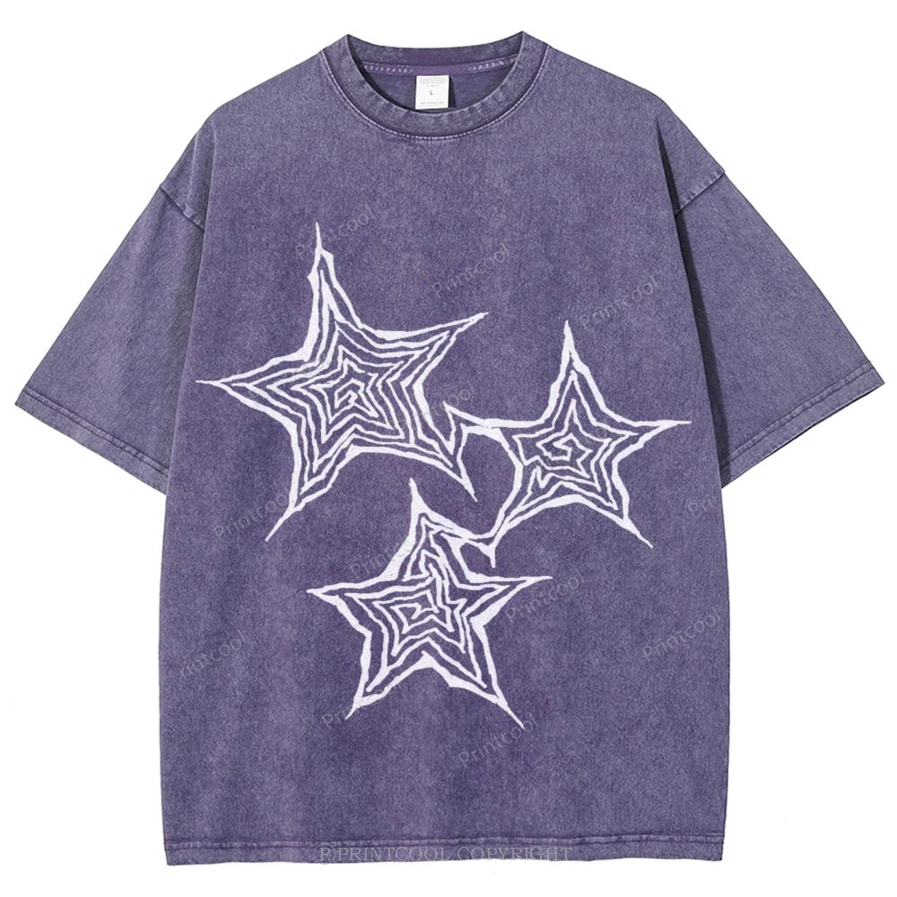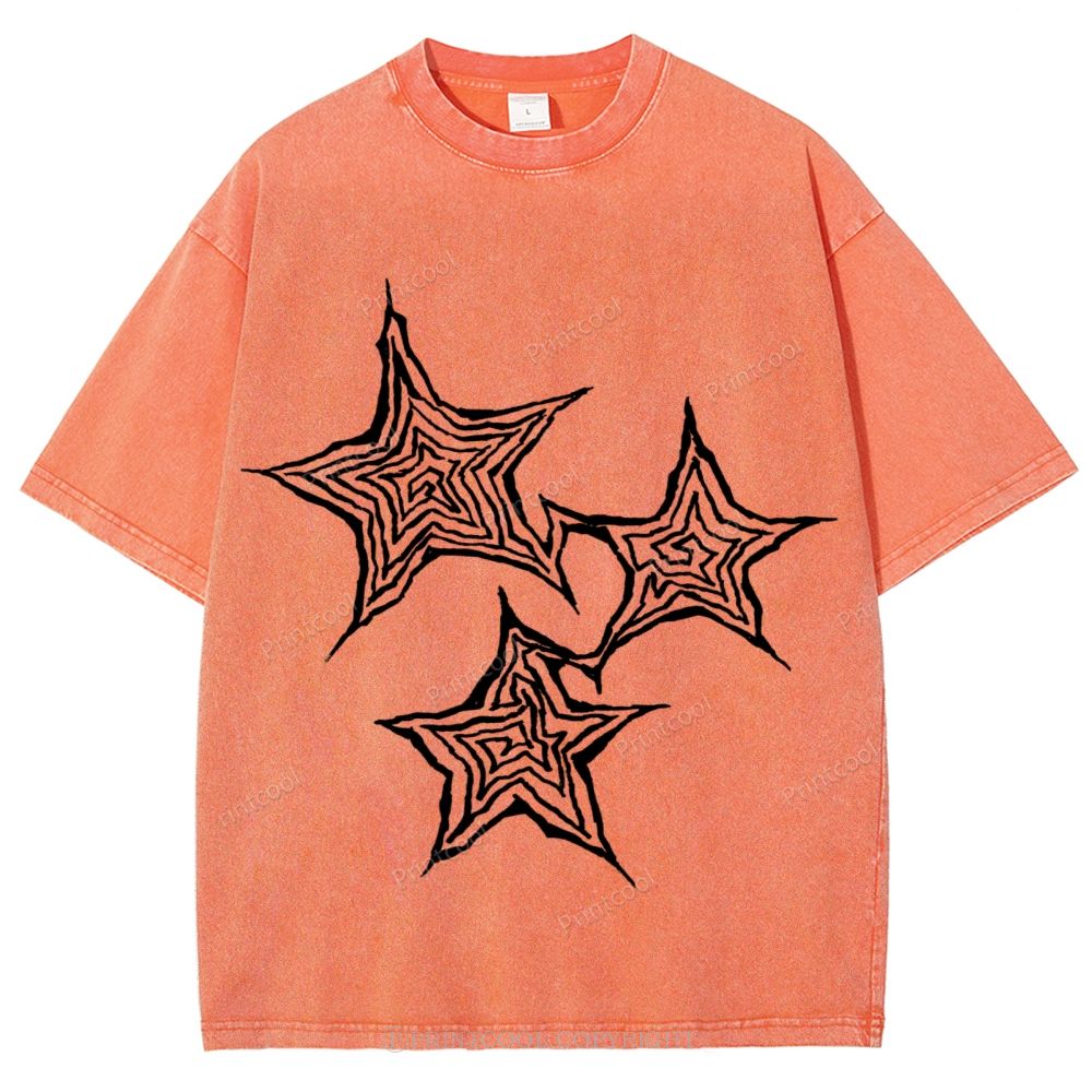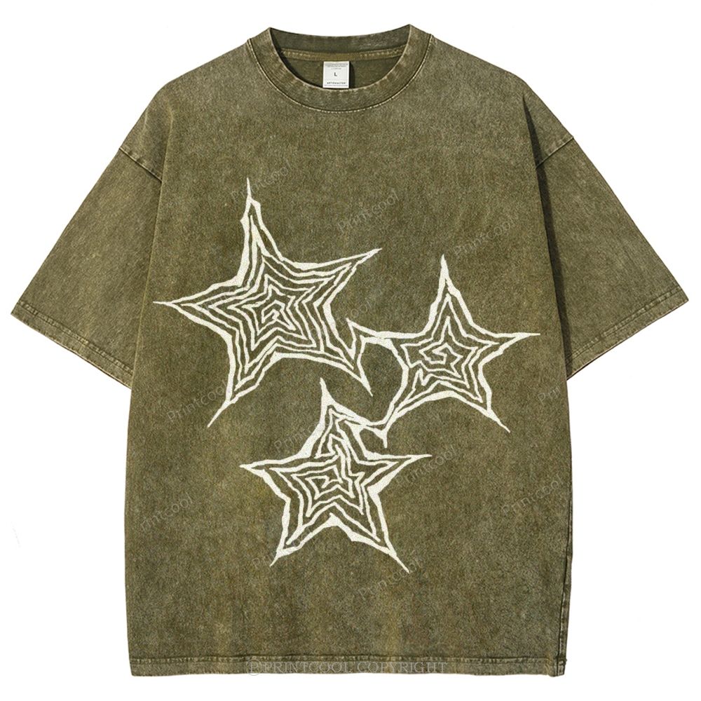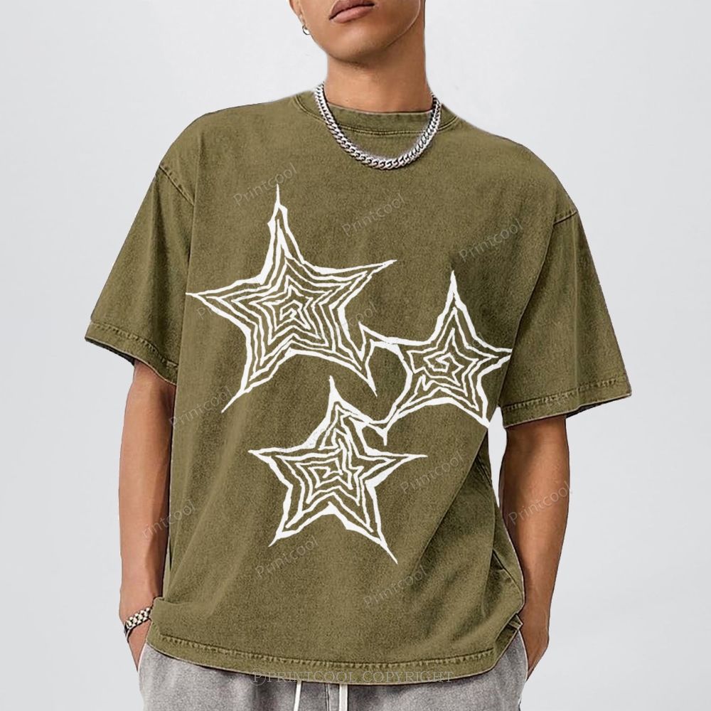 Trendy Geometric Star Print Unisex Vintage Washed Tee