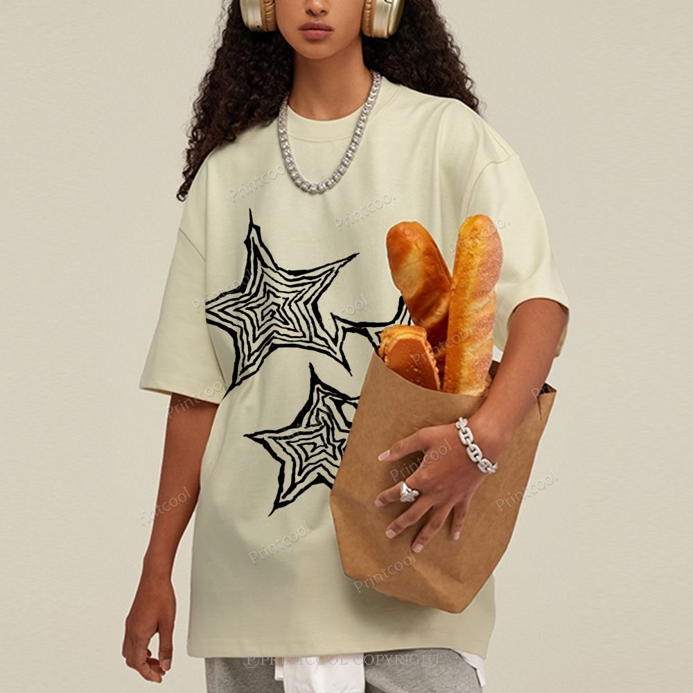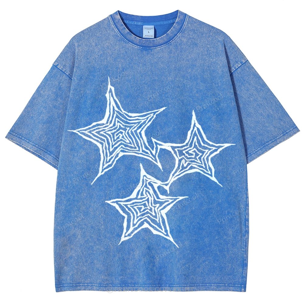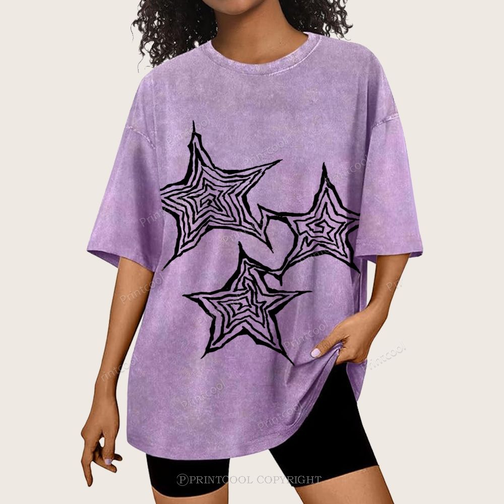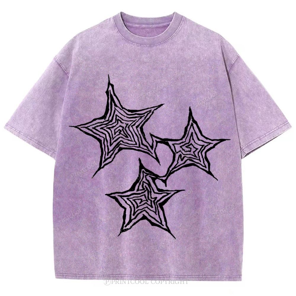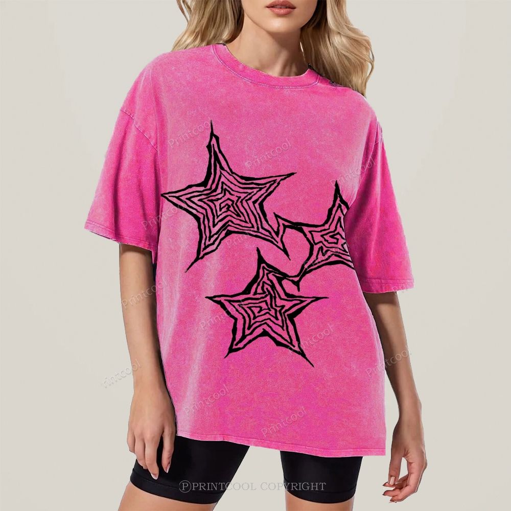 Trendy Geometric Star Print Unisex Vintage Washed Tee