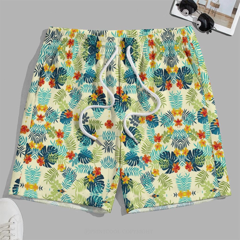 Tropical Hibiscus Palm Leaf Men's Printed Casual Beach Plus Size Shorts