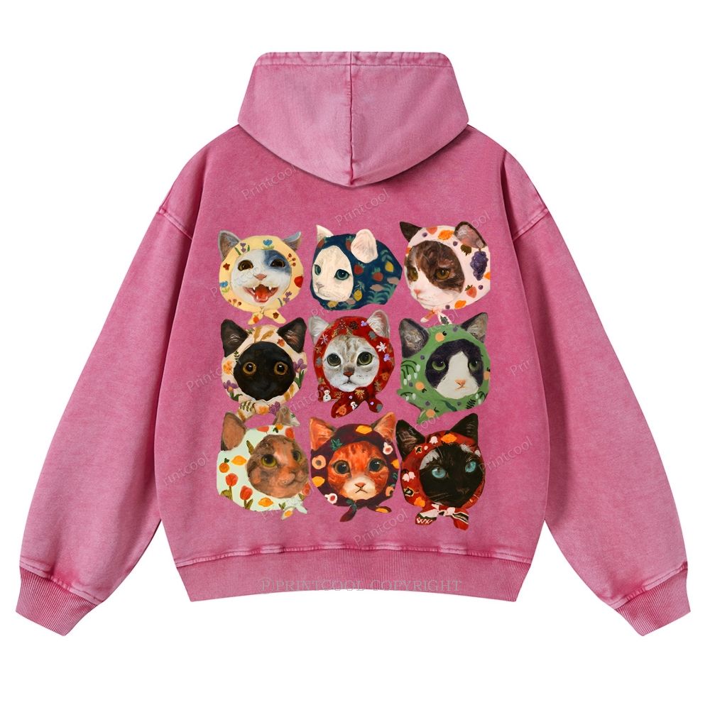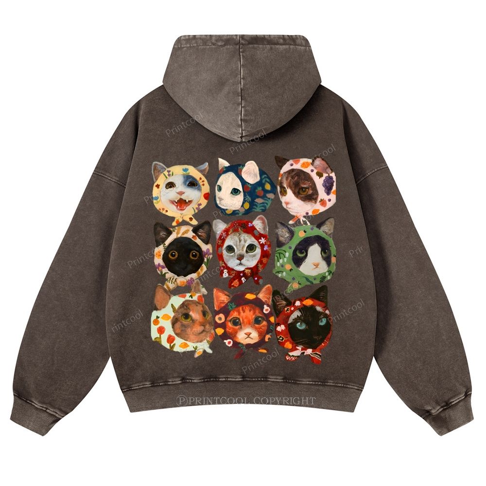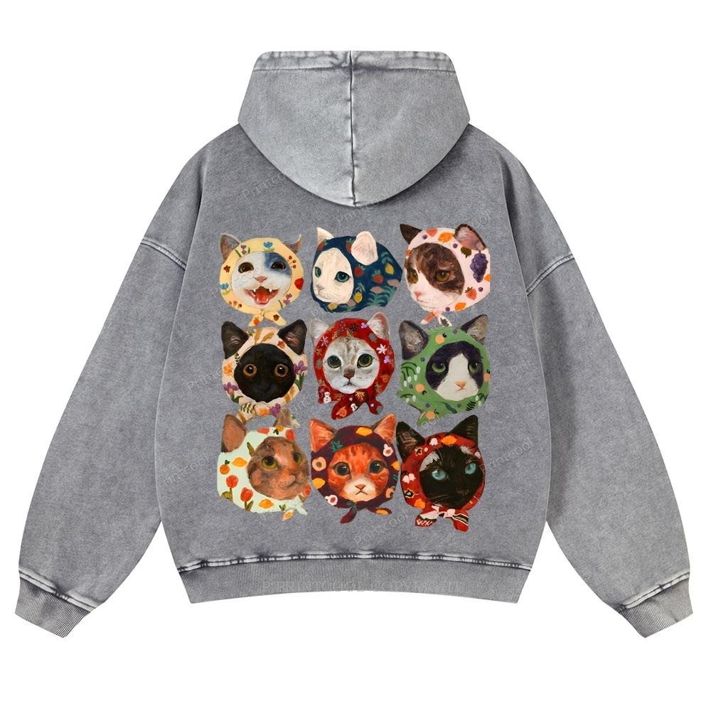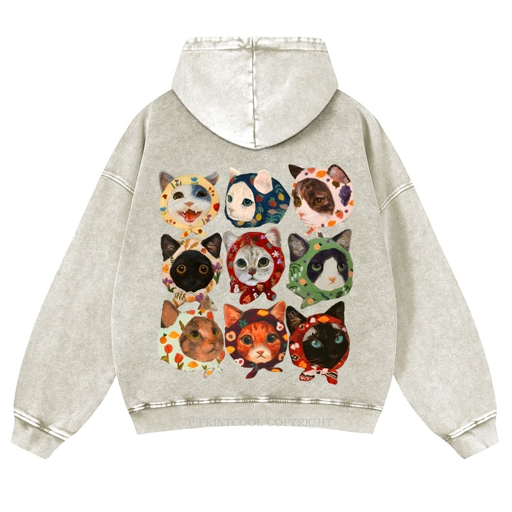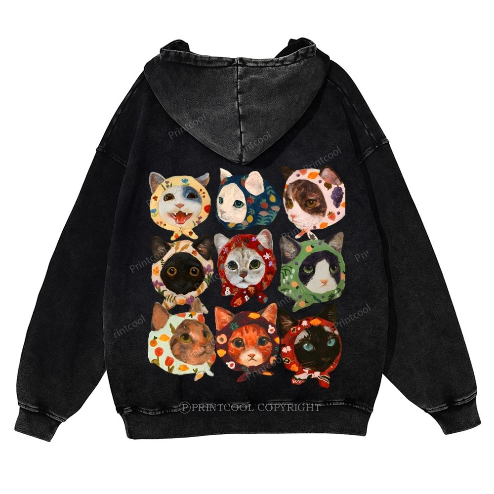 Turban Cat Unisex Washed Cotton Zip Up Hoodie