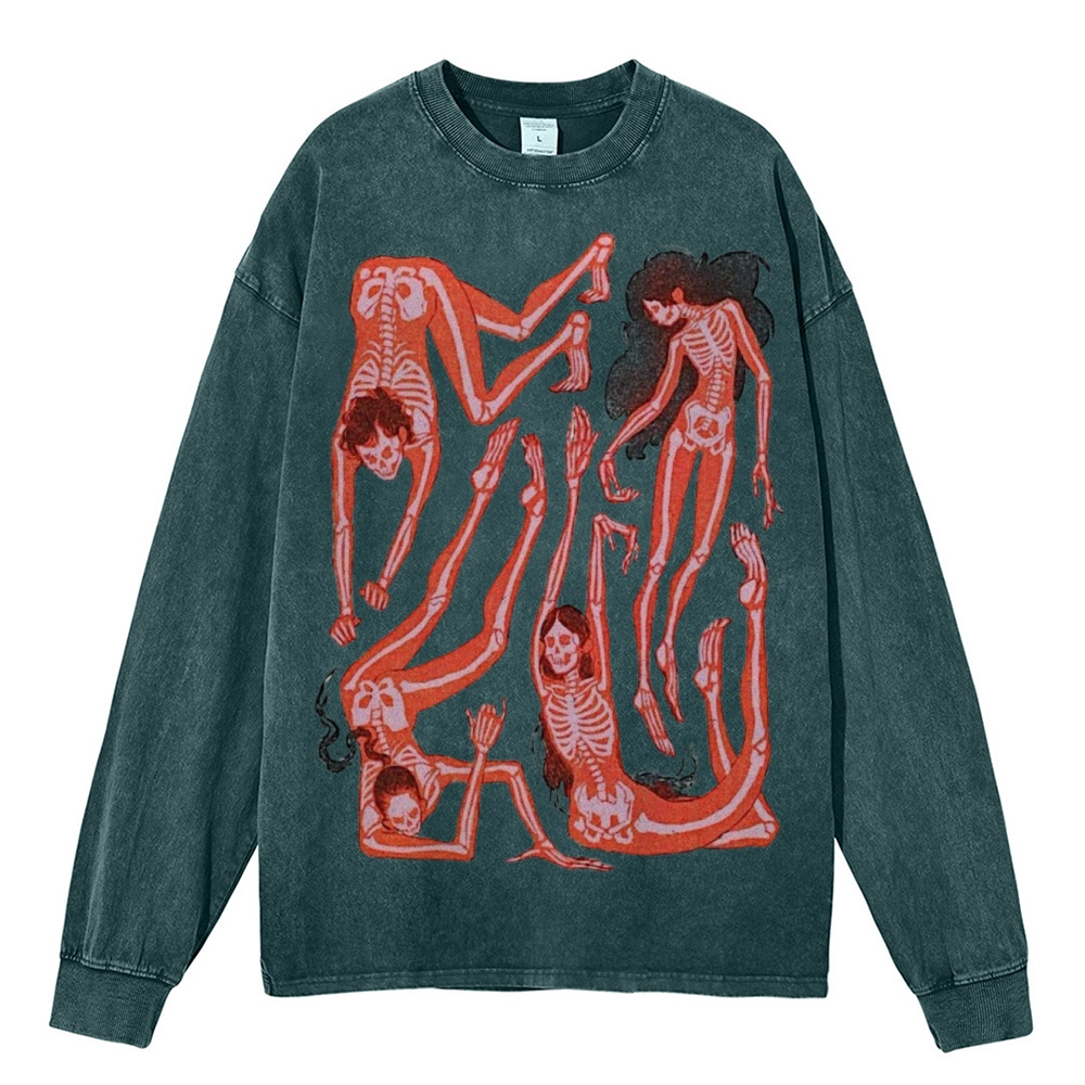 Ultimate Skeleton Dance Party Unisex Casual Washed Printed Long Sleeve T-shirt