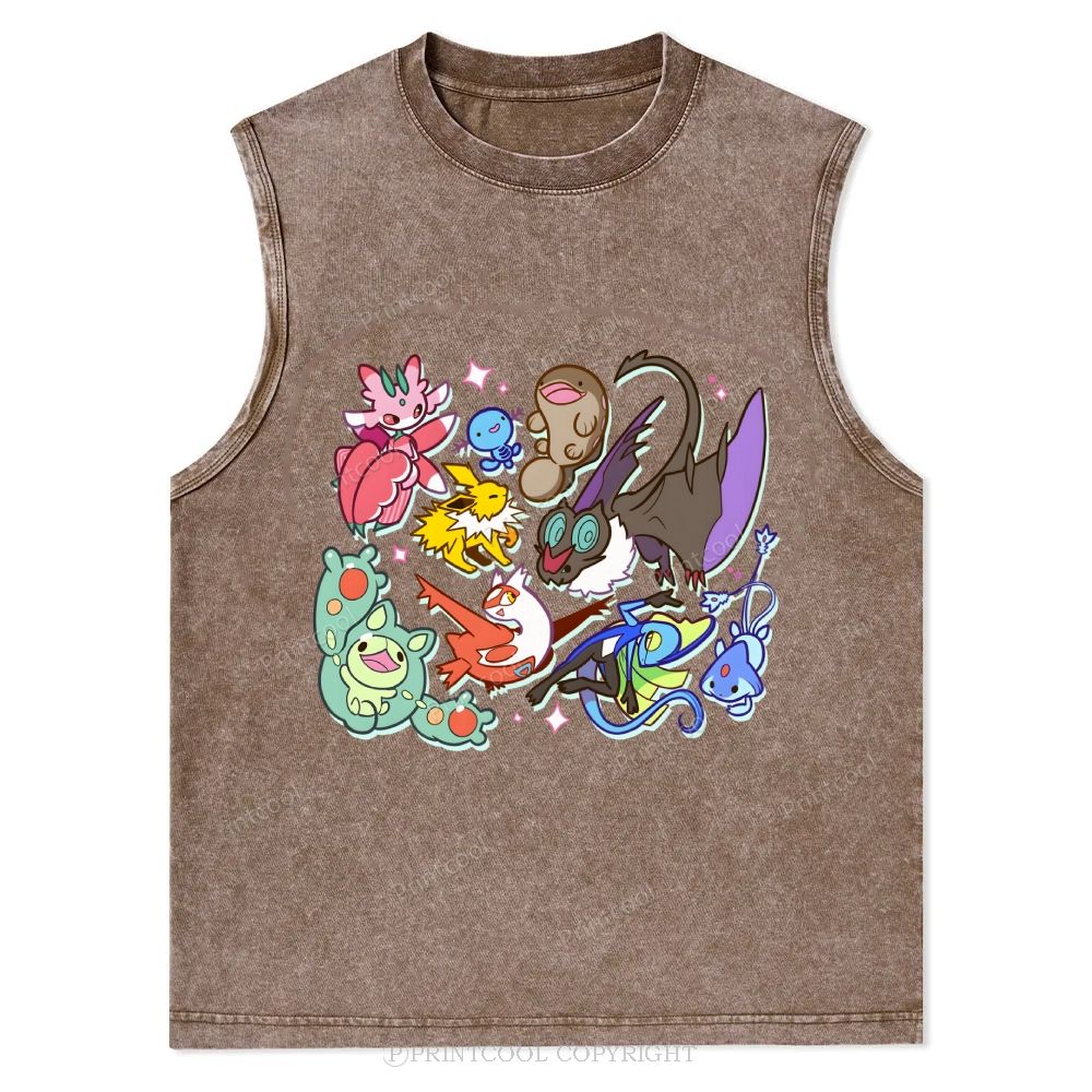 Vibrant Anime Creature Squad Unisex Washed Tank Top