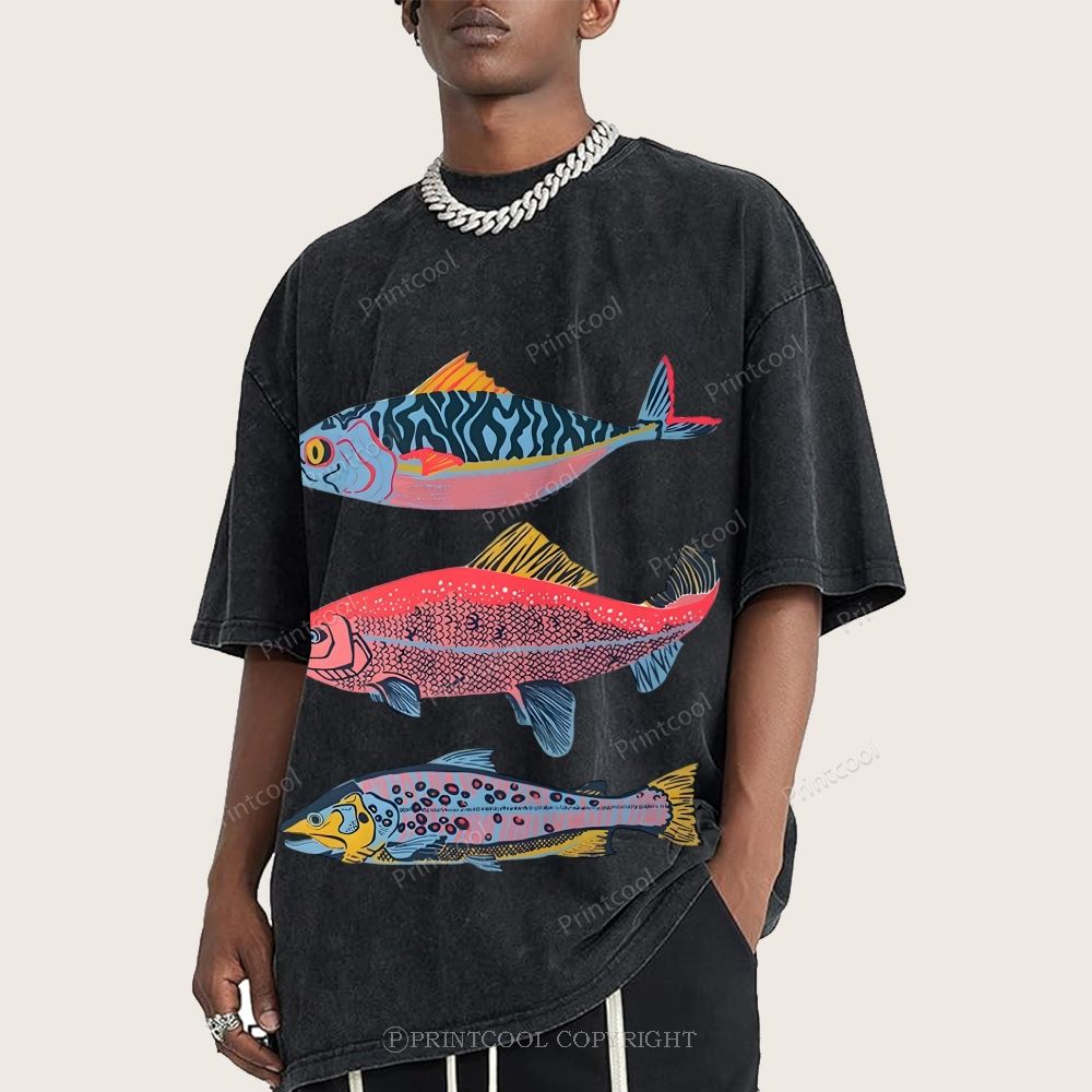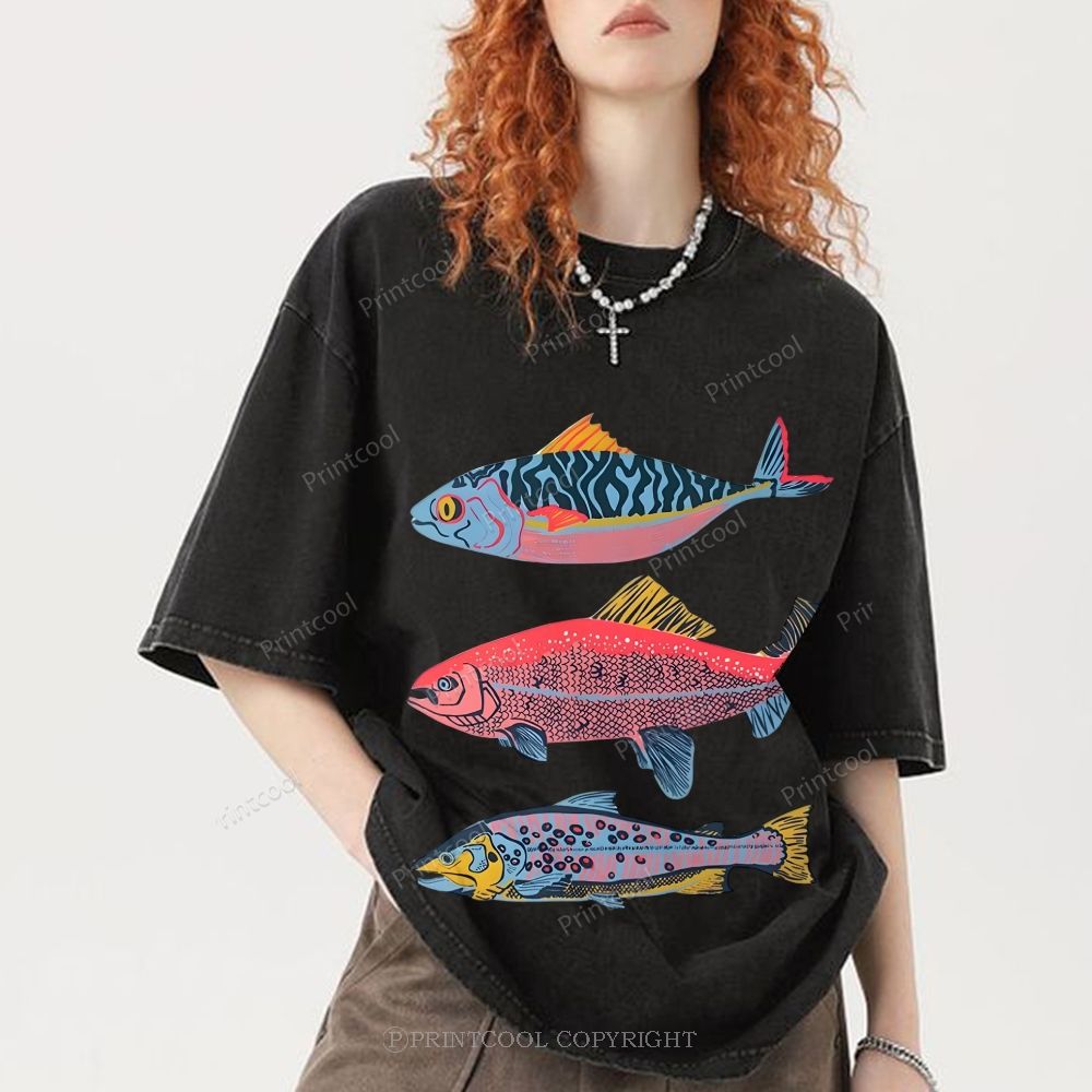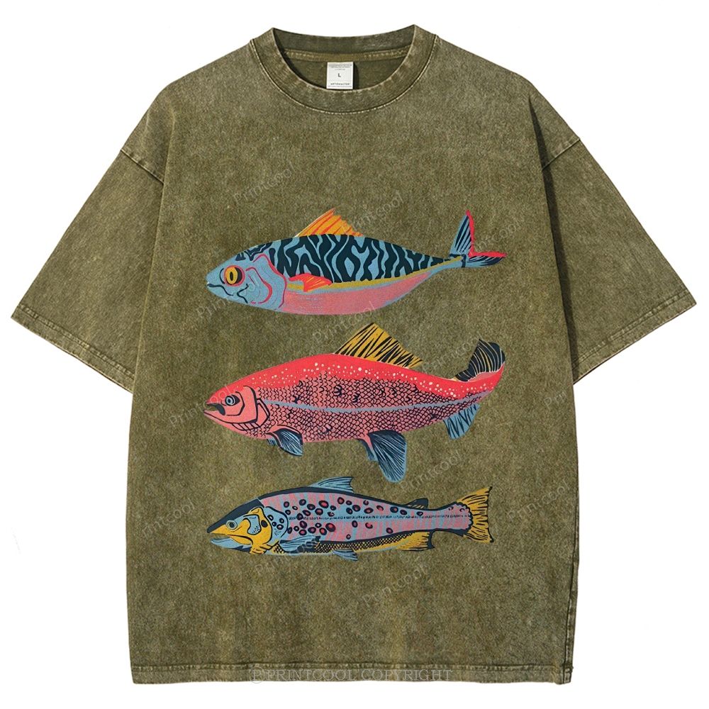Vintage Fish Trio Unisex Vintage Washed Tee