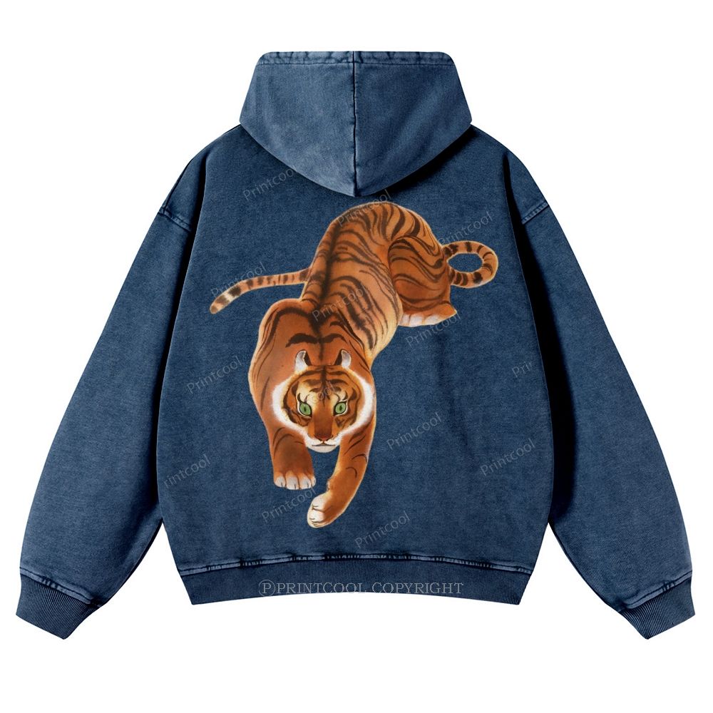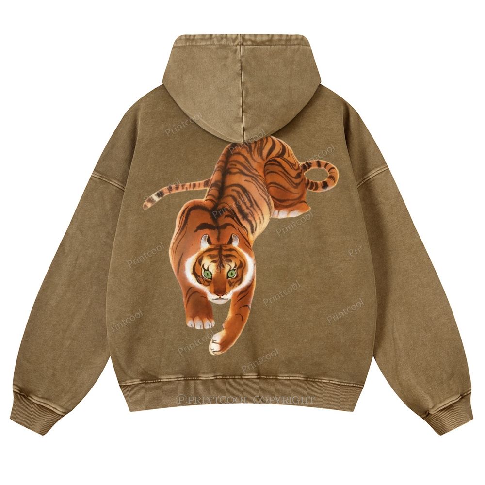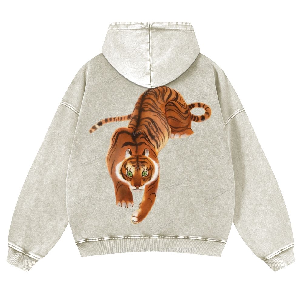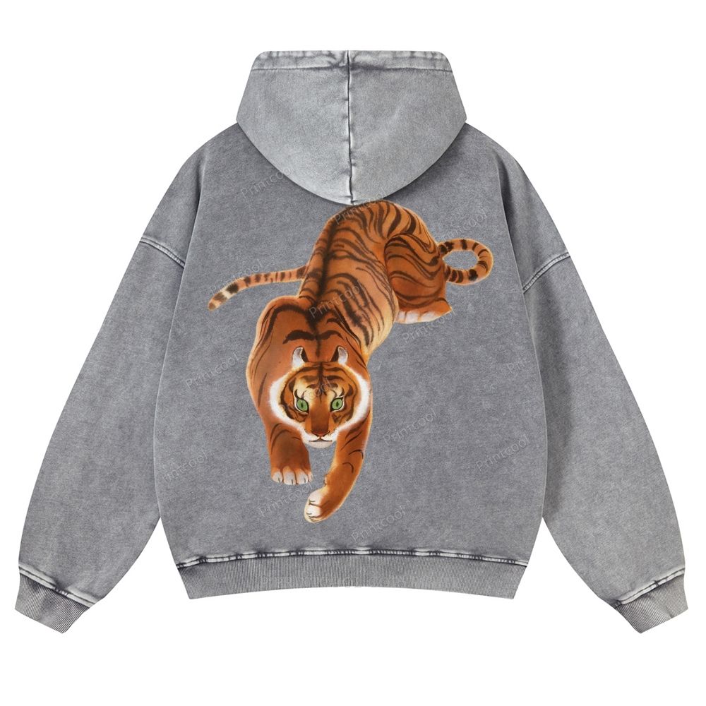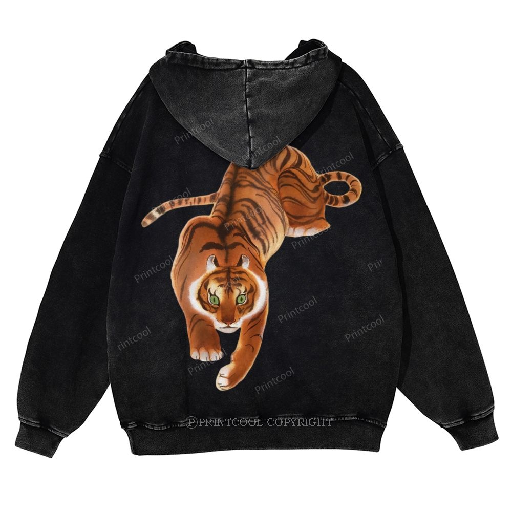 Vintage Oriental Tiger Casual Washed Hoodie