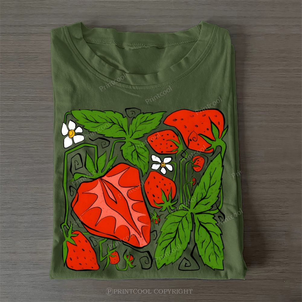 Vintage Strawberry Art Casual Cotton T-Shirt