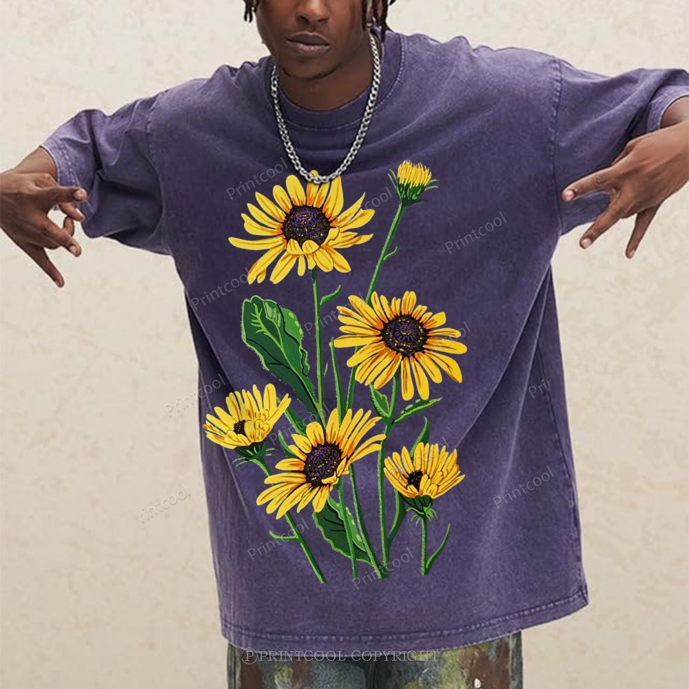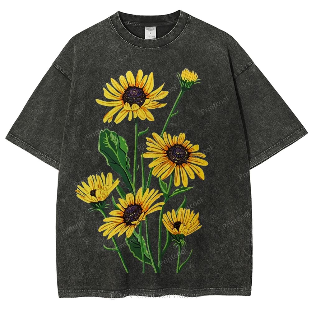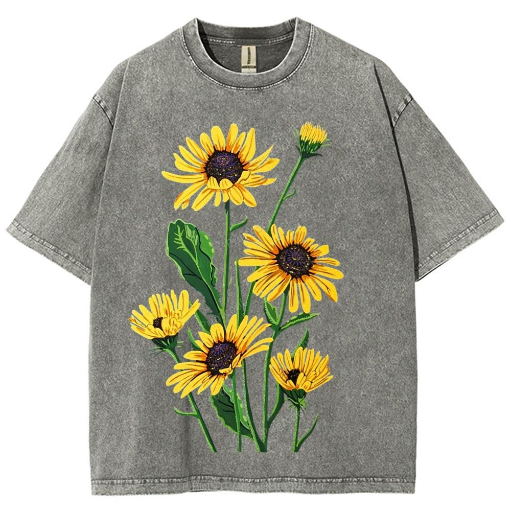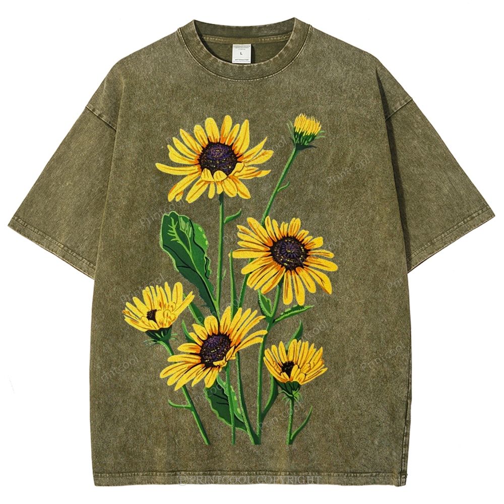 Vintage Sunflower Bouquet Unisex Vintage Washed Tee
