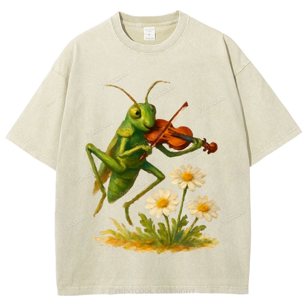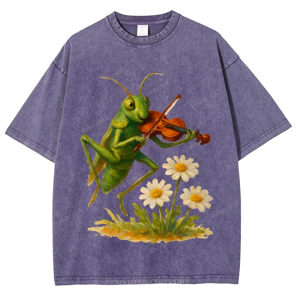 Violin Grasshopper Serenade Unisex Vintage Washed Tee