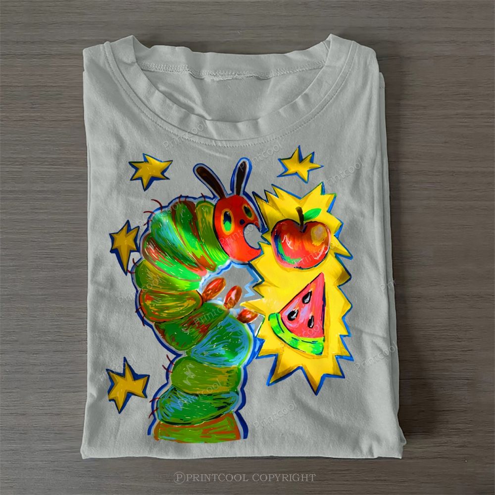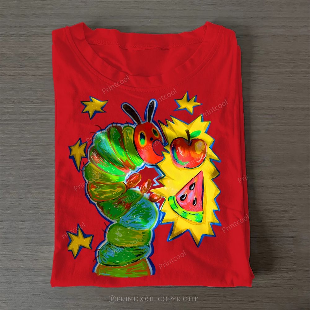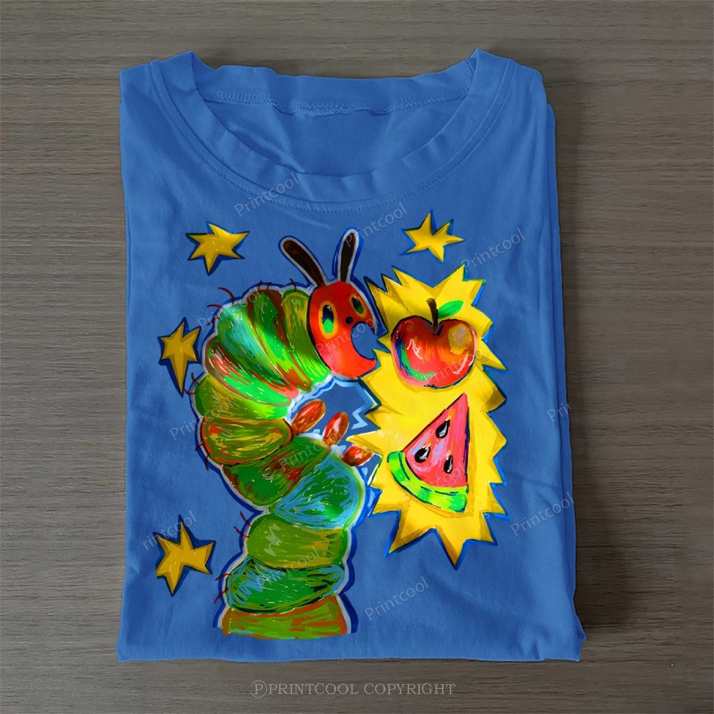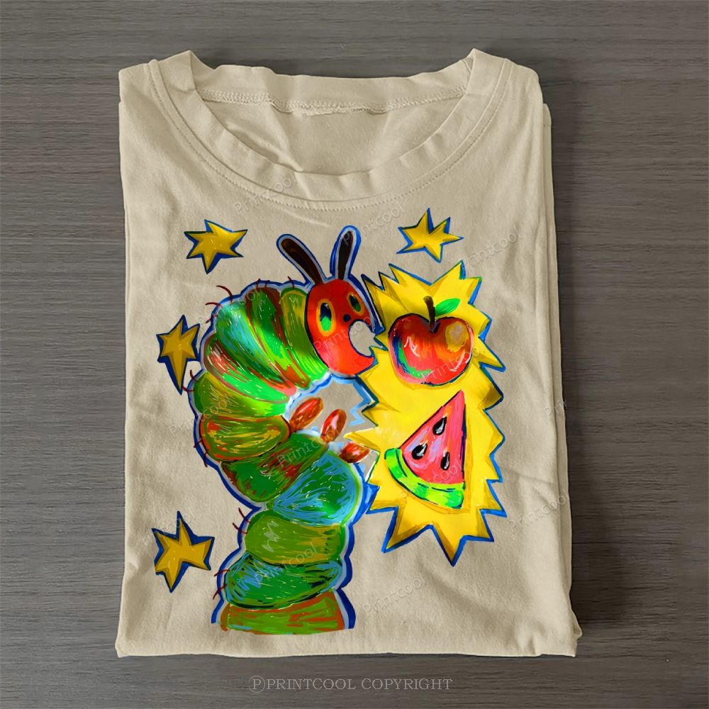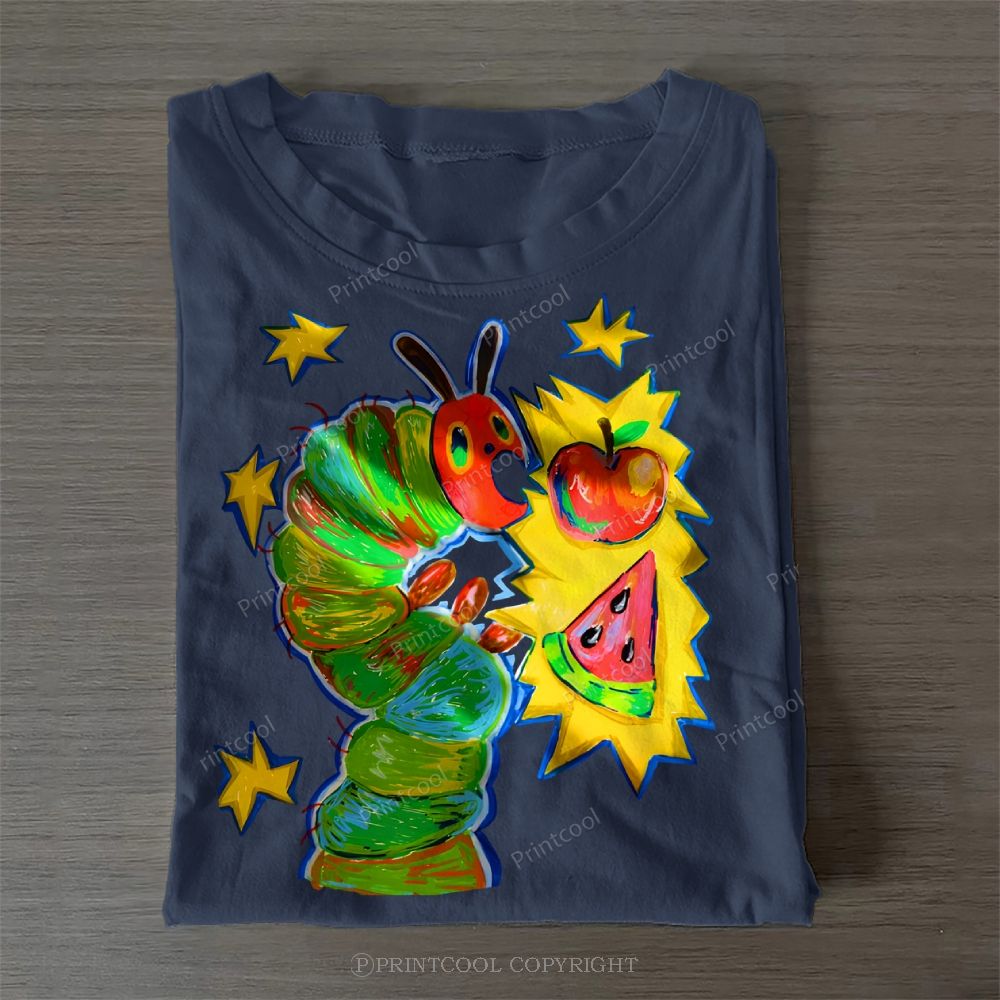Whimsical Caterpillar Fruit Casual Cotton T-Shirt