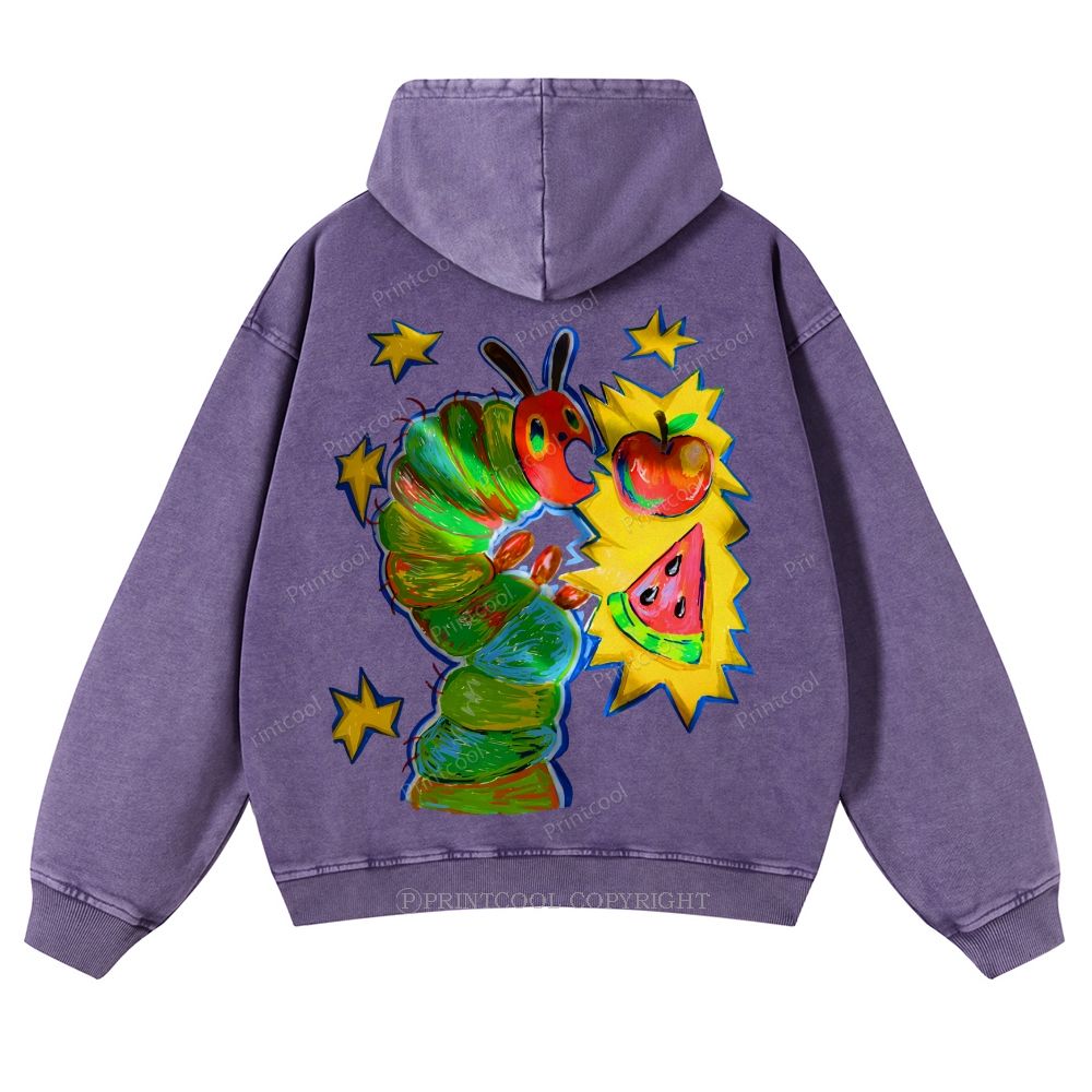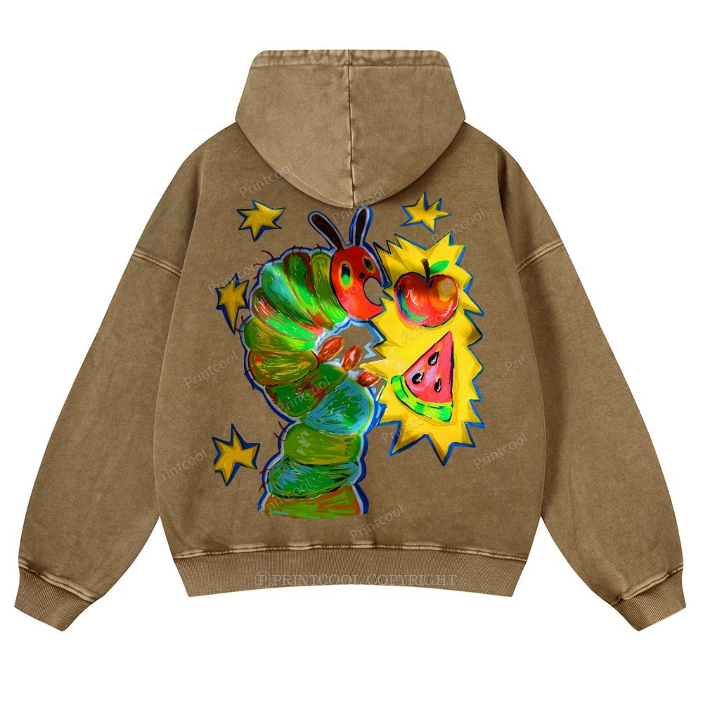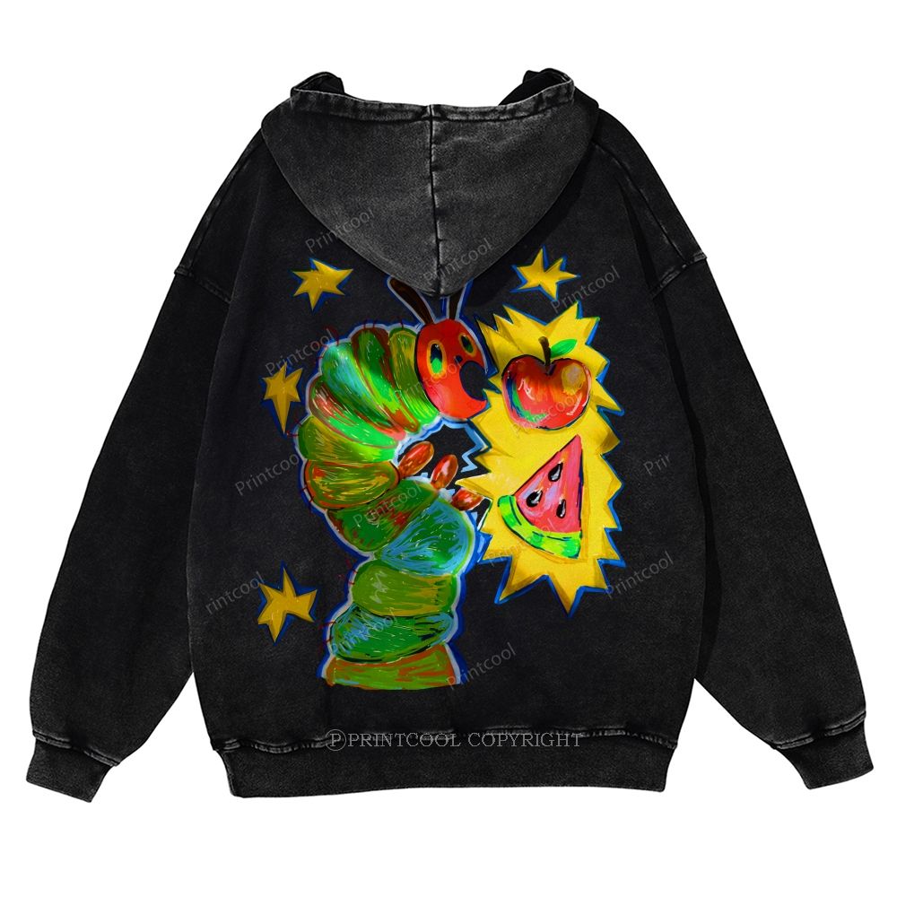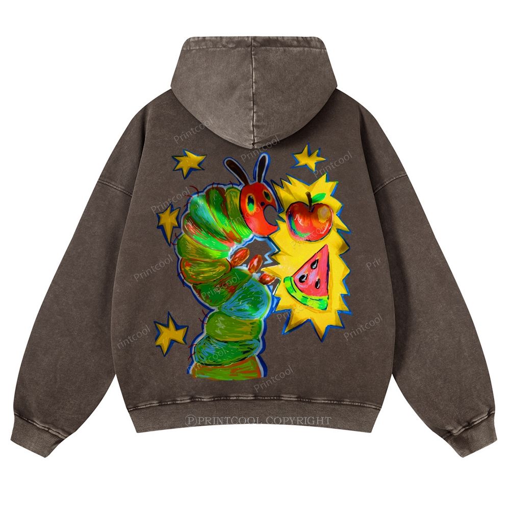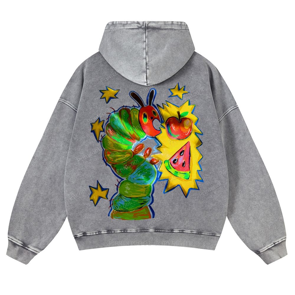 Whimsical Caterpillar Fruit Casual Washed Hoodie