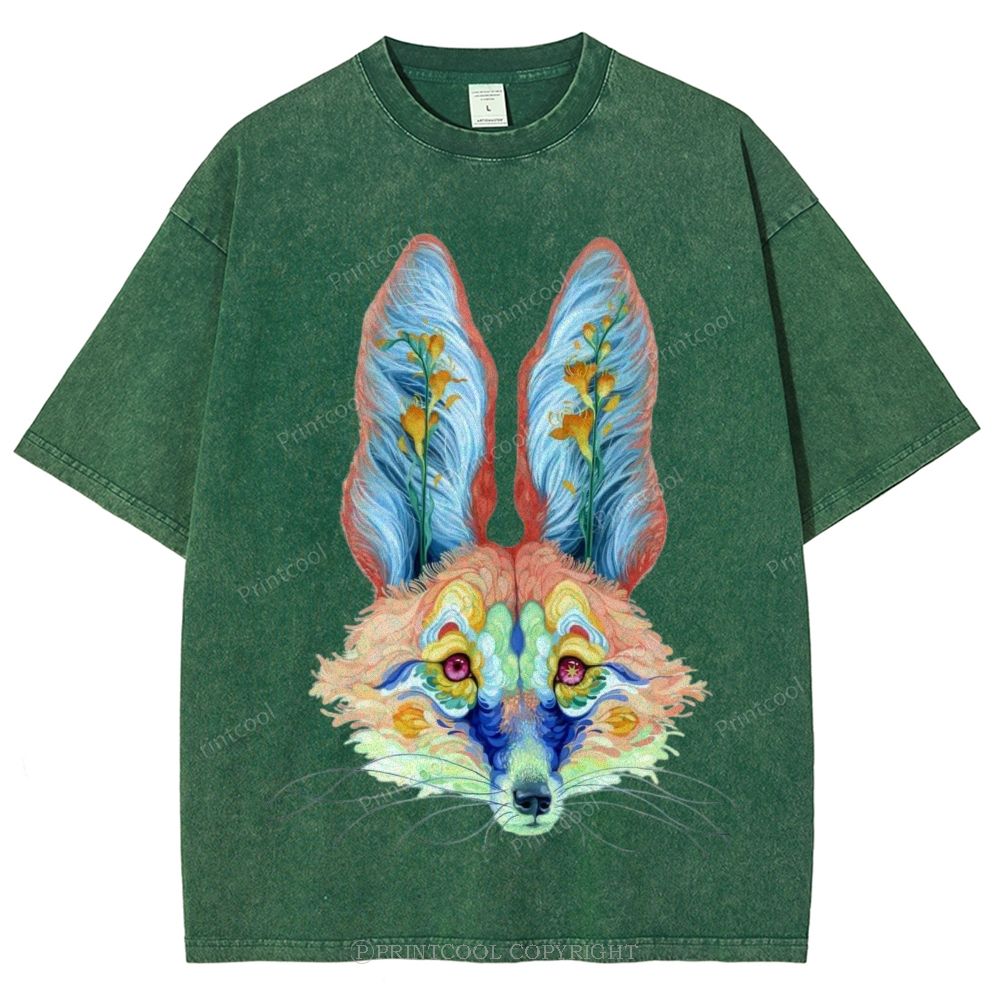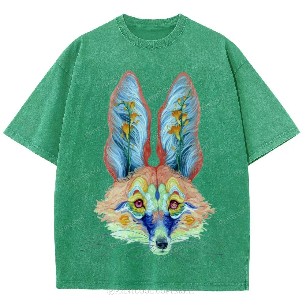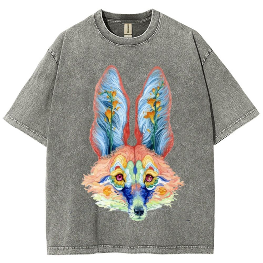 Whimsical Floral Fox Unisex Vintage Washed Tee