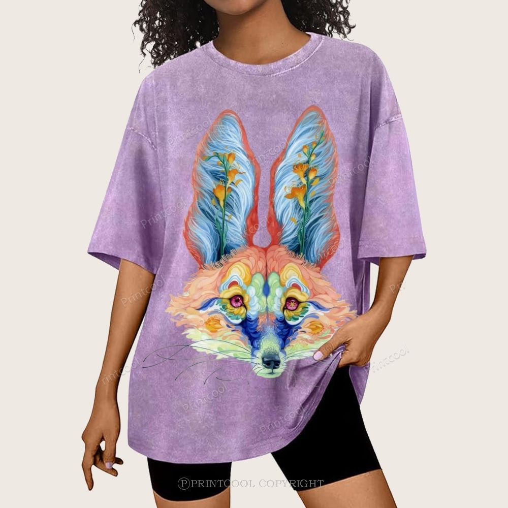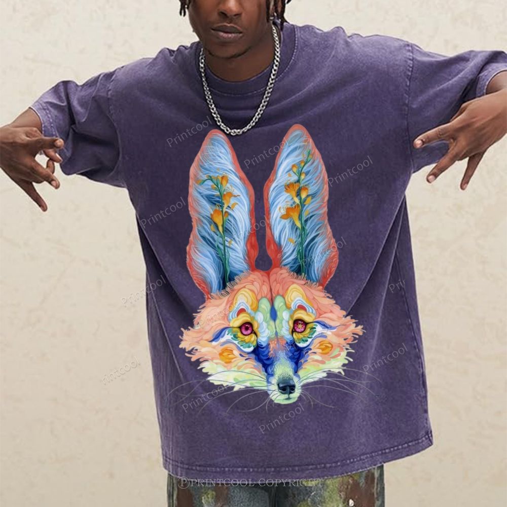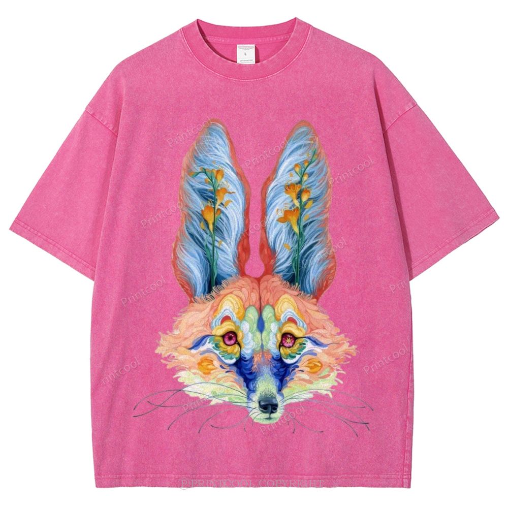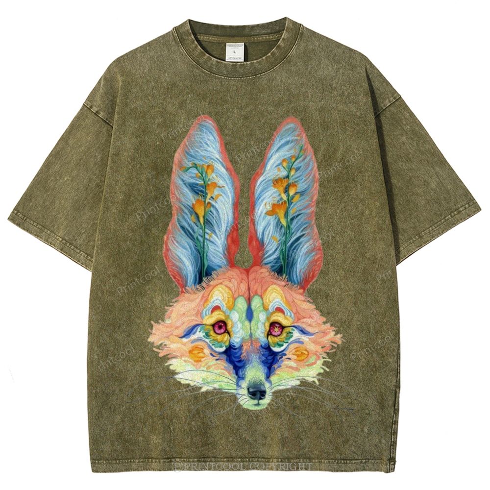 Whimsical Floral Fox Unisex Vintage Washed Tee
