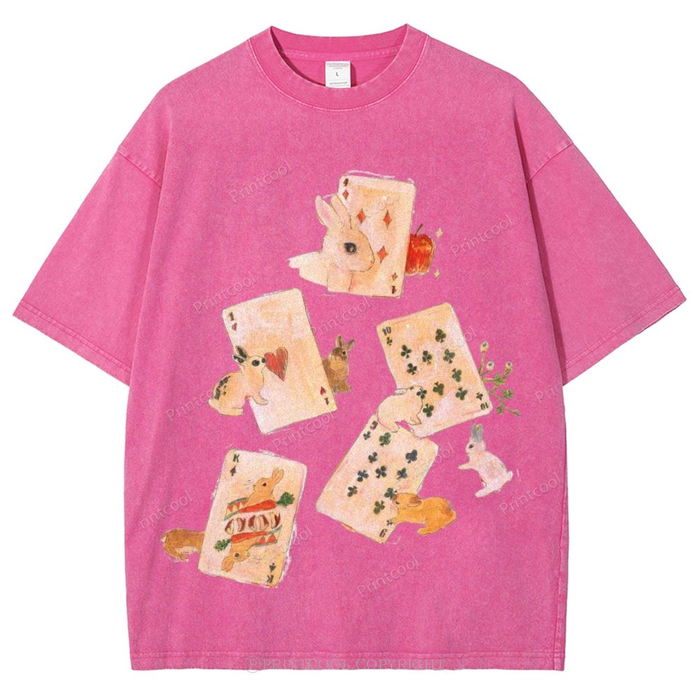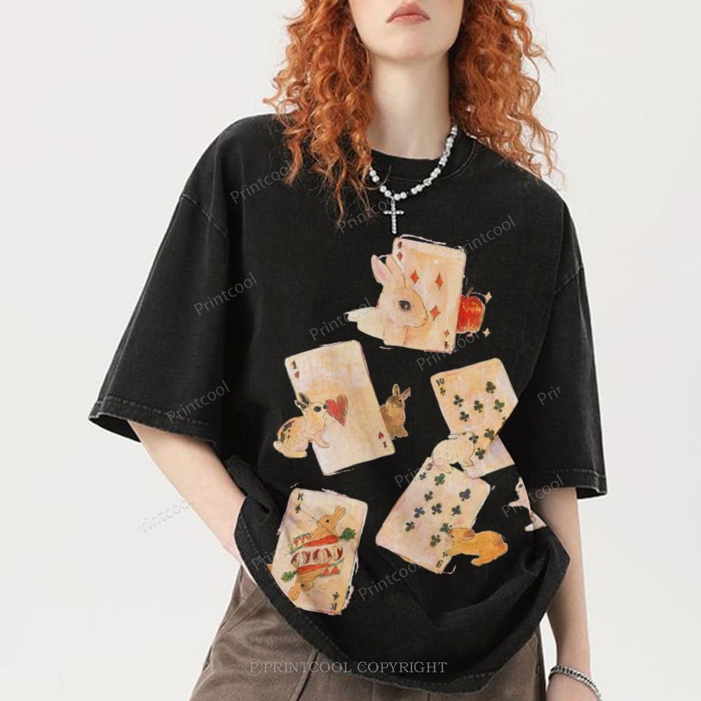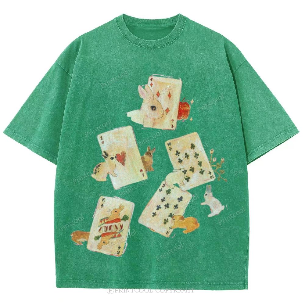 Whimsical Rabbit Playing Cards Unisex Vintage Washed Tee