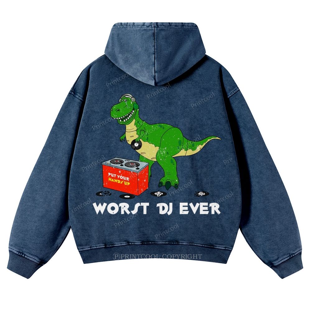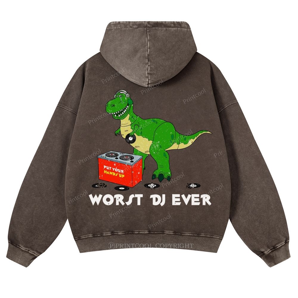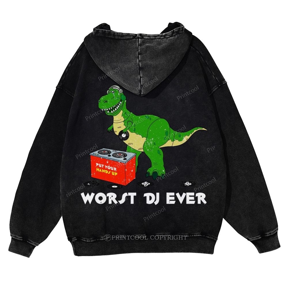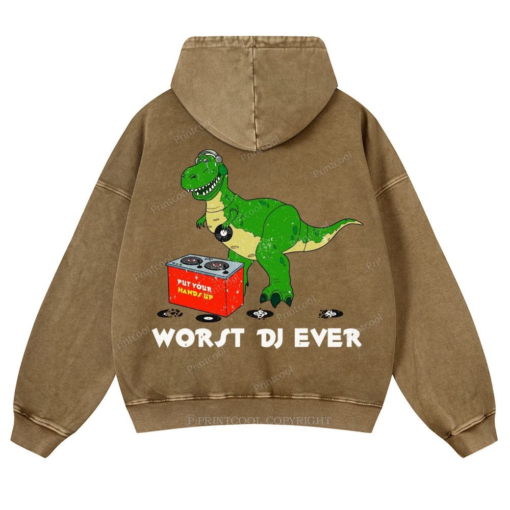 Worst DJ Ever T-Rex Casual Washed Hoodie