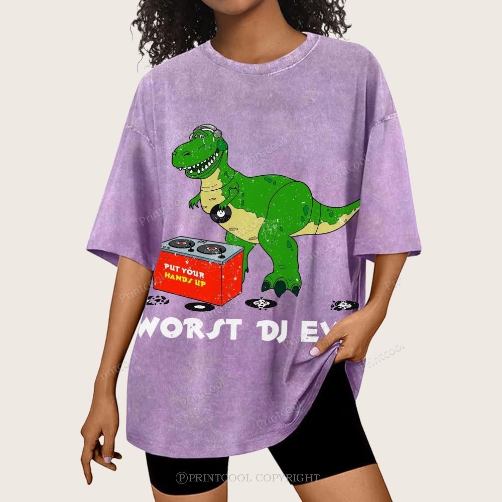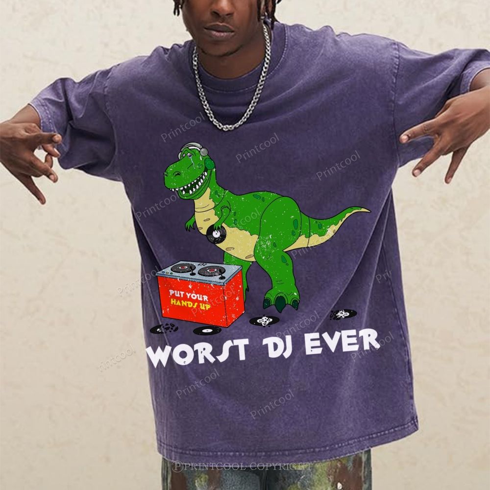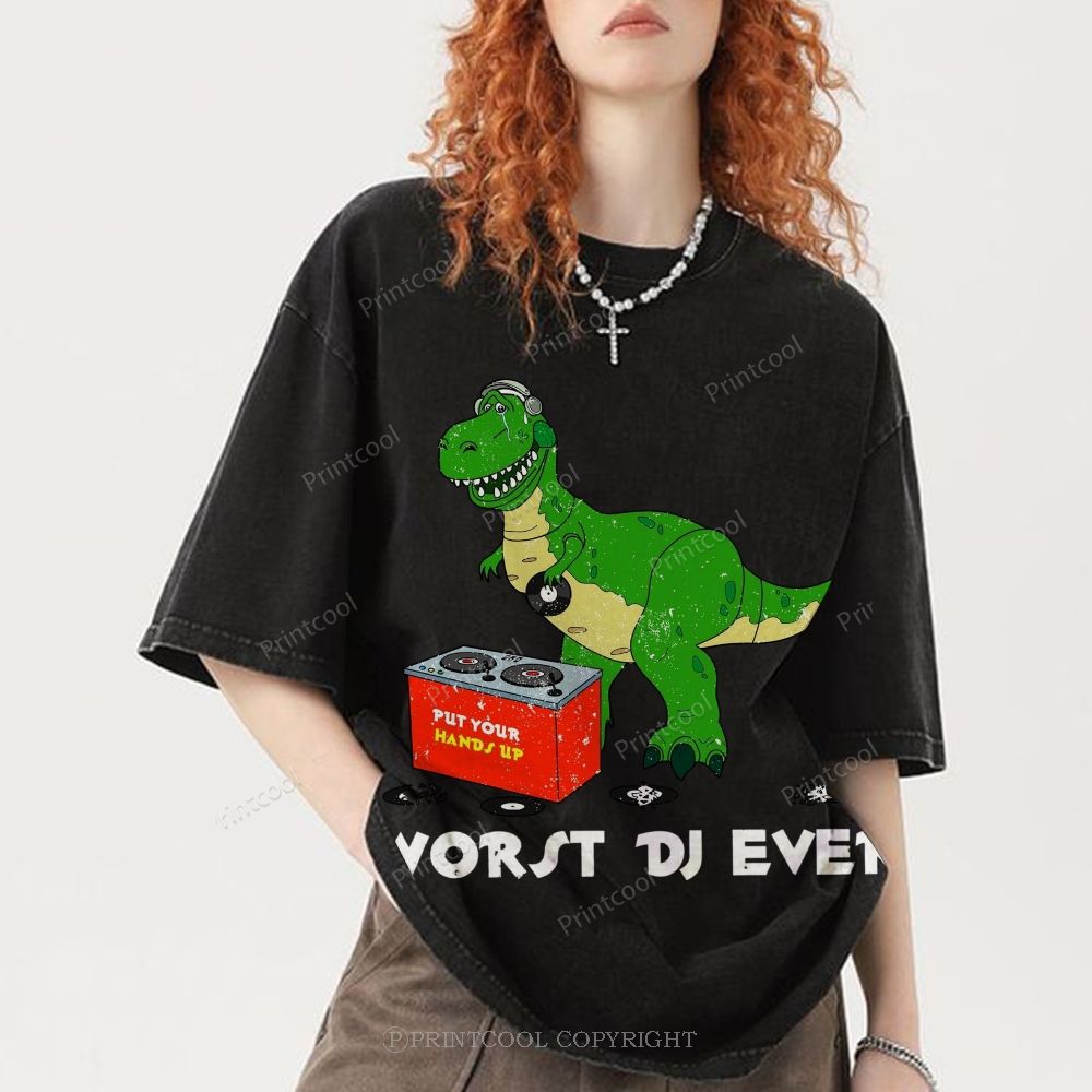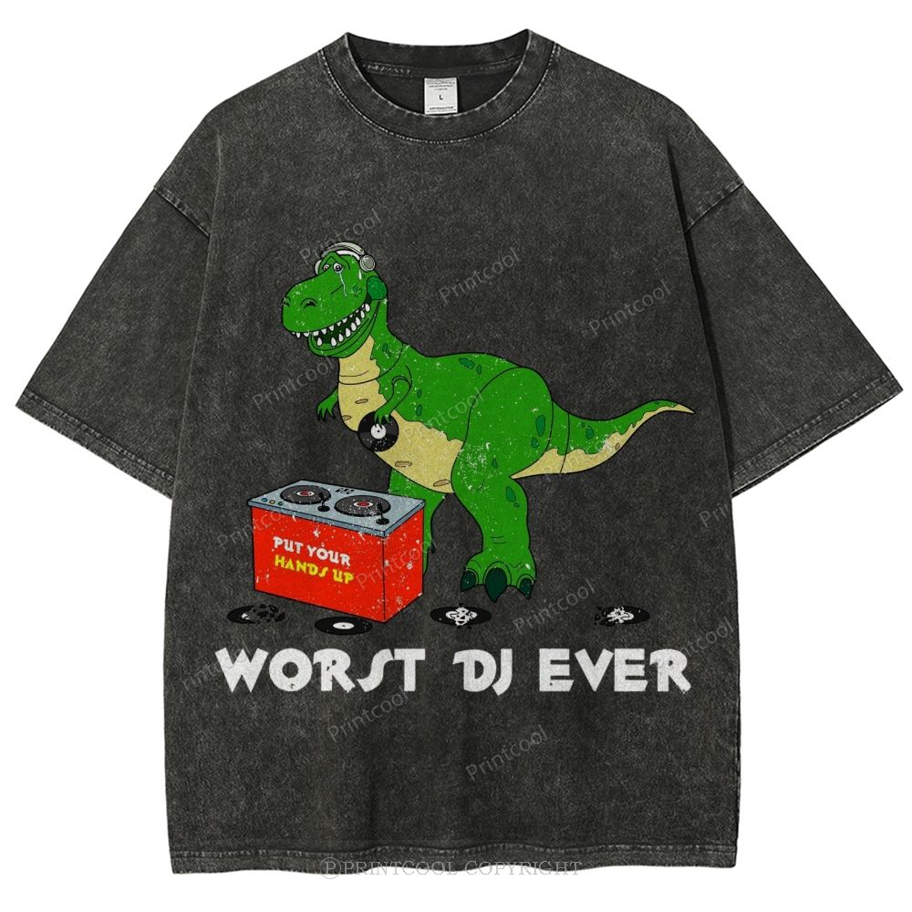 Worst DJ Ever T-Rex Unisex Vintage Washed Tee