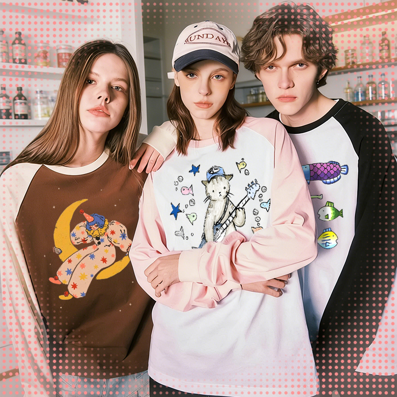 Vintage Sun Moon Star Anthropomorphic Casual Cotton T-Shirt