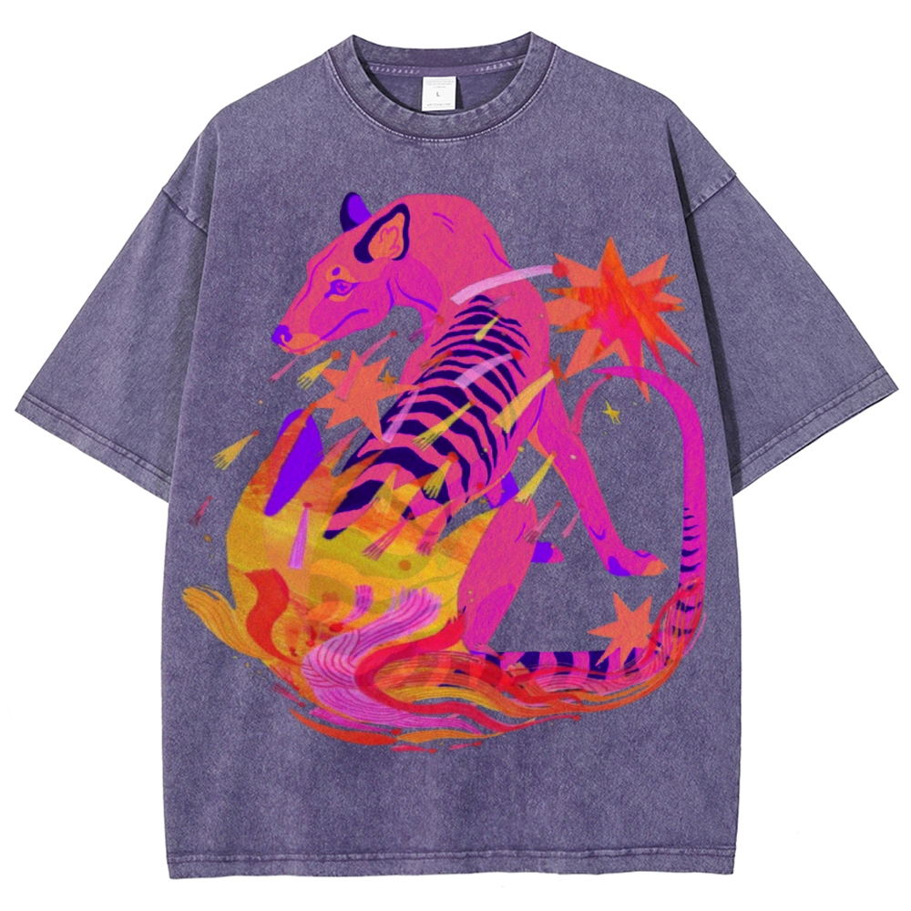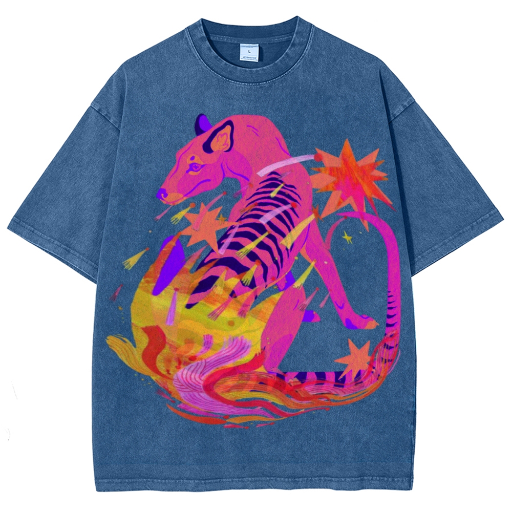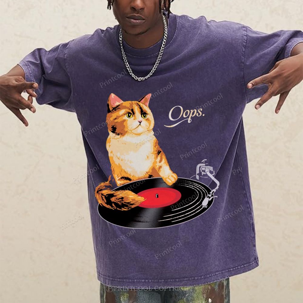 Punk Cat Illustration Unisex Vintage Washed Tee