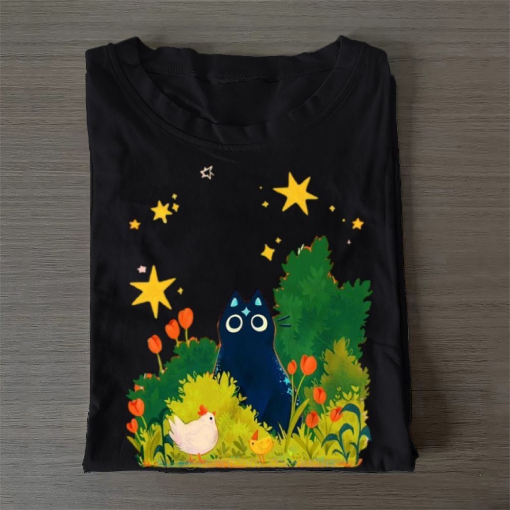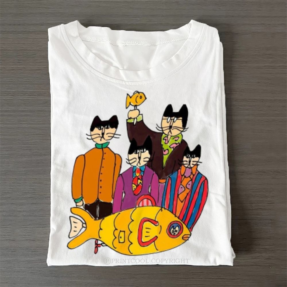Cat And Seagull Casual Cotton T-Shirt