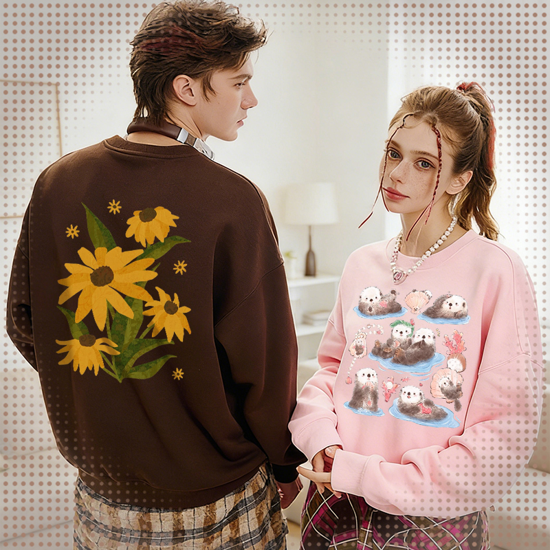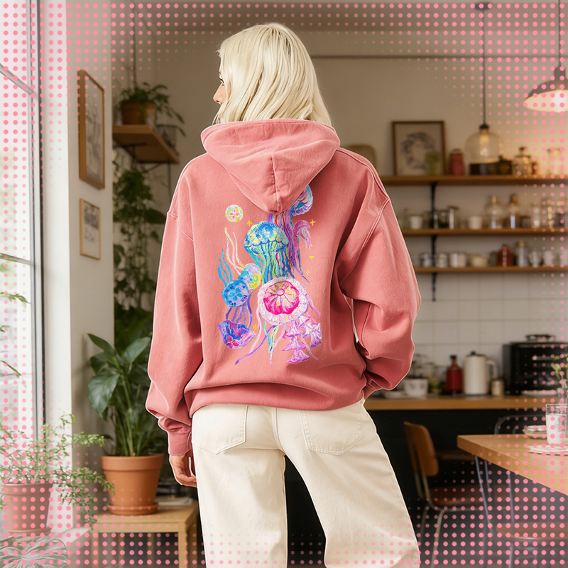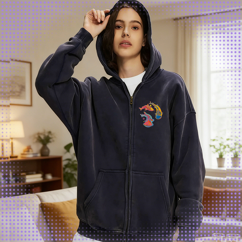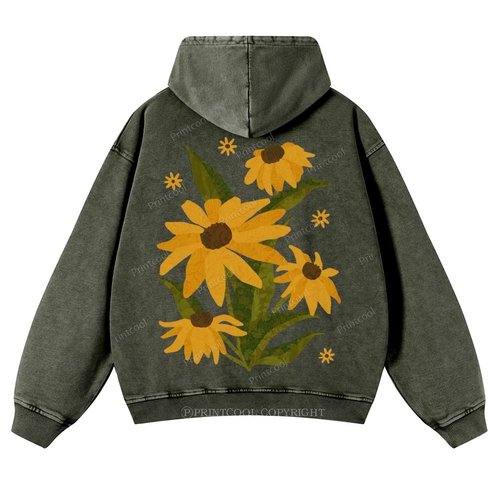 Caterpillar and Flower Collage Casual Washed Hoodie