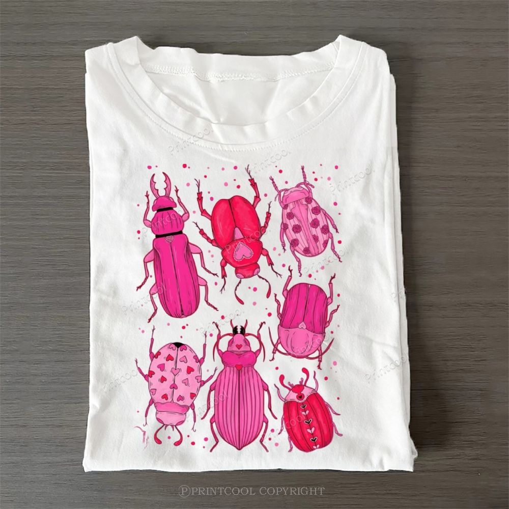 Pink Beetles Casual Cotton T-Shirt