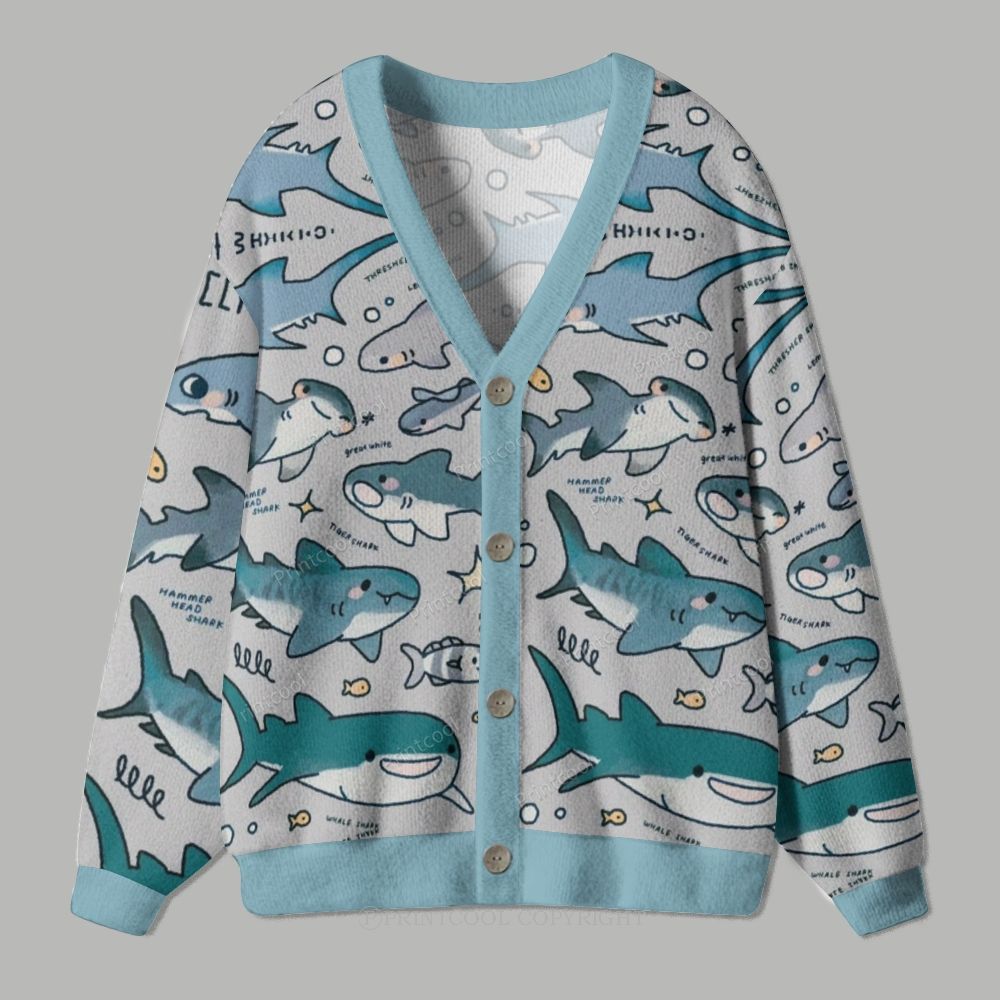 Cute Cartoon Sharks Ugly Cardigan Sweater