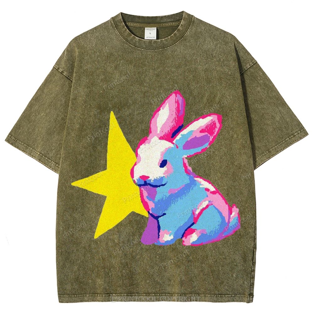 Heebie Jeebies Nervous Bunny Humor Unisex Vintage Washed Tee
