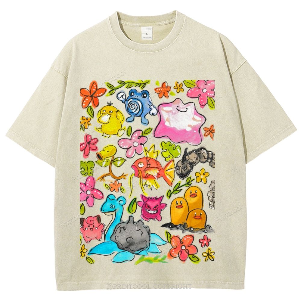 Cute Pokémon Illustrations Unisex Vintage Washed Tee