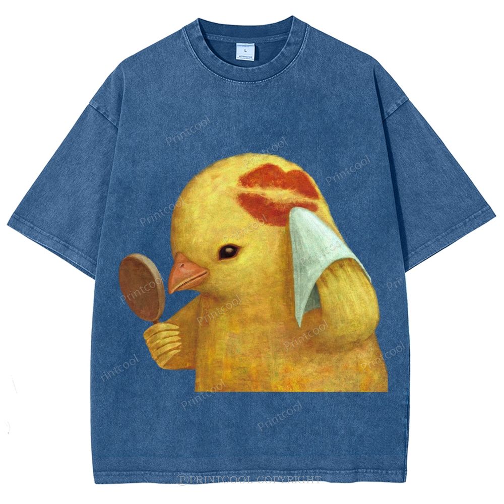 A Chichen Being Kissed Unisex Vintage Washed Tee