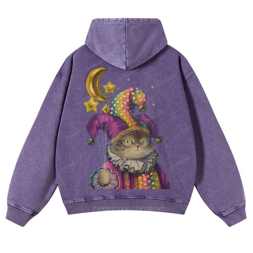 Magic Cat Illustration Casual Washed Hoodie