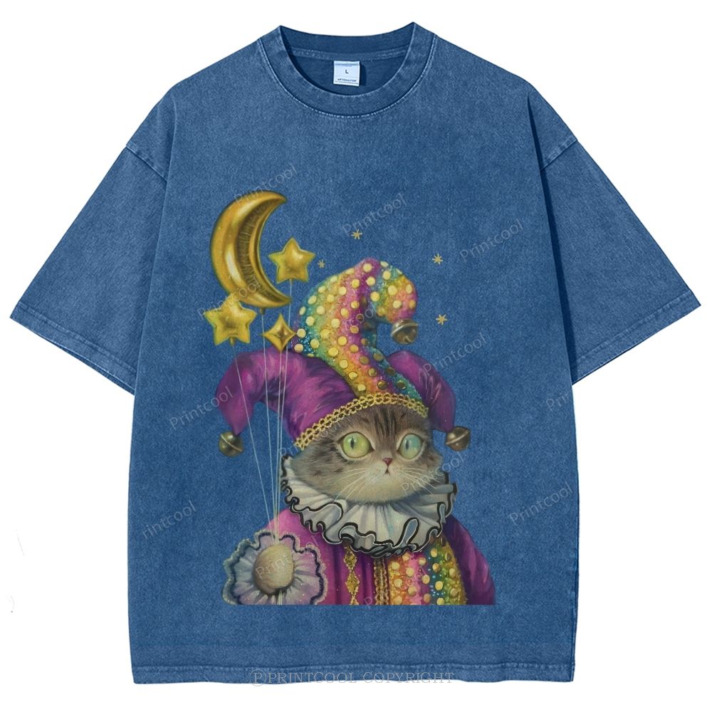 Magic Cat Illustration Unisex Vintage Washed Tee