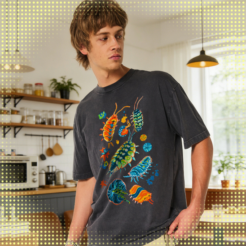 Cute Insects And Strawberries Unisex Vintage Washed Tee