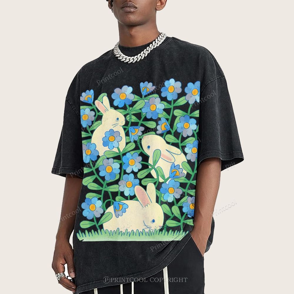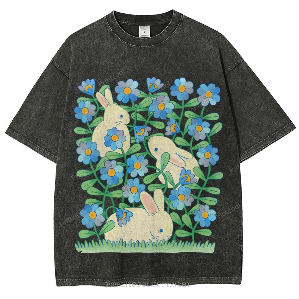 Rabbit In Green Leaves Unisex Vintage Washed Tee