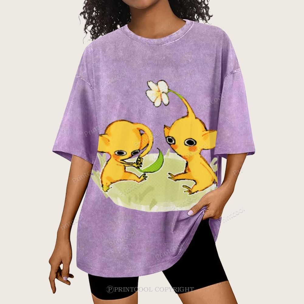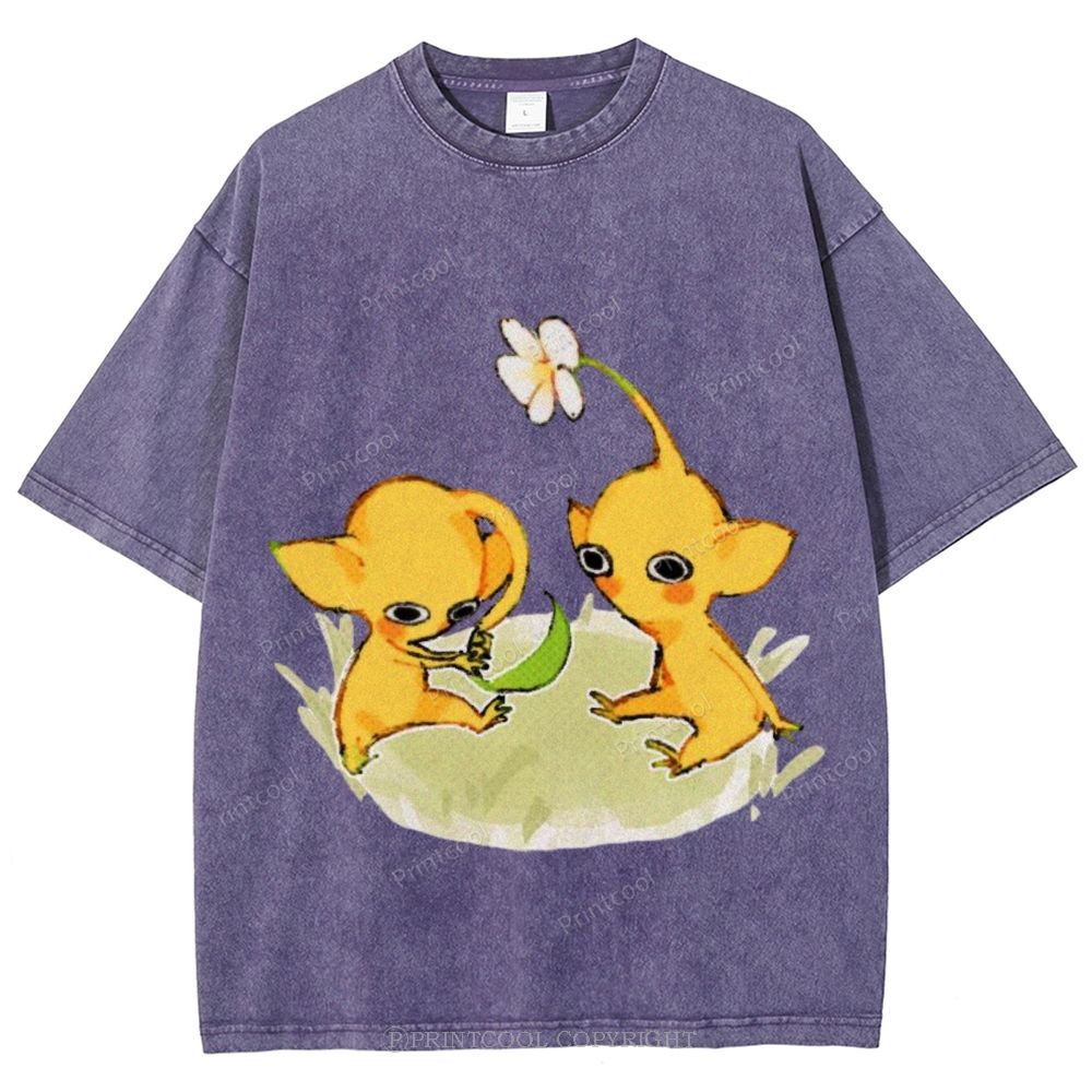 Little Fairy's Flowers And Leaves Unisex Vintage Washed Tee