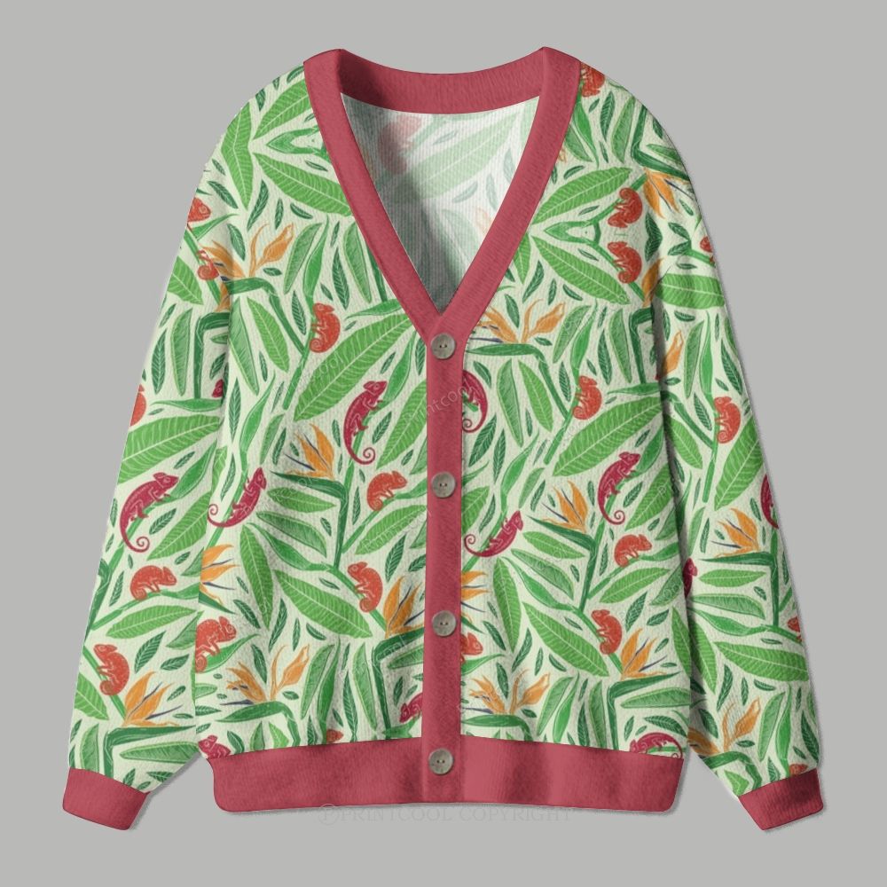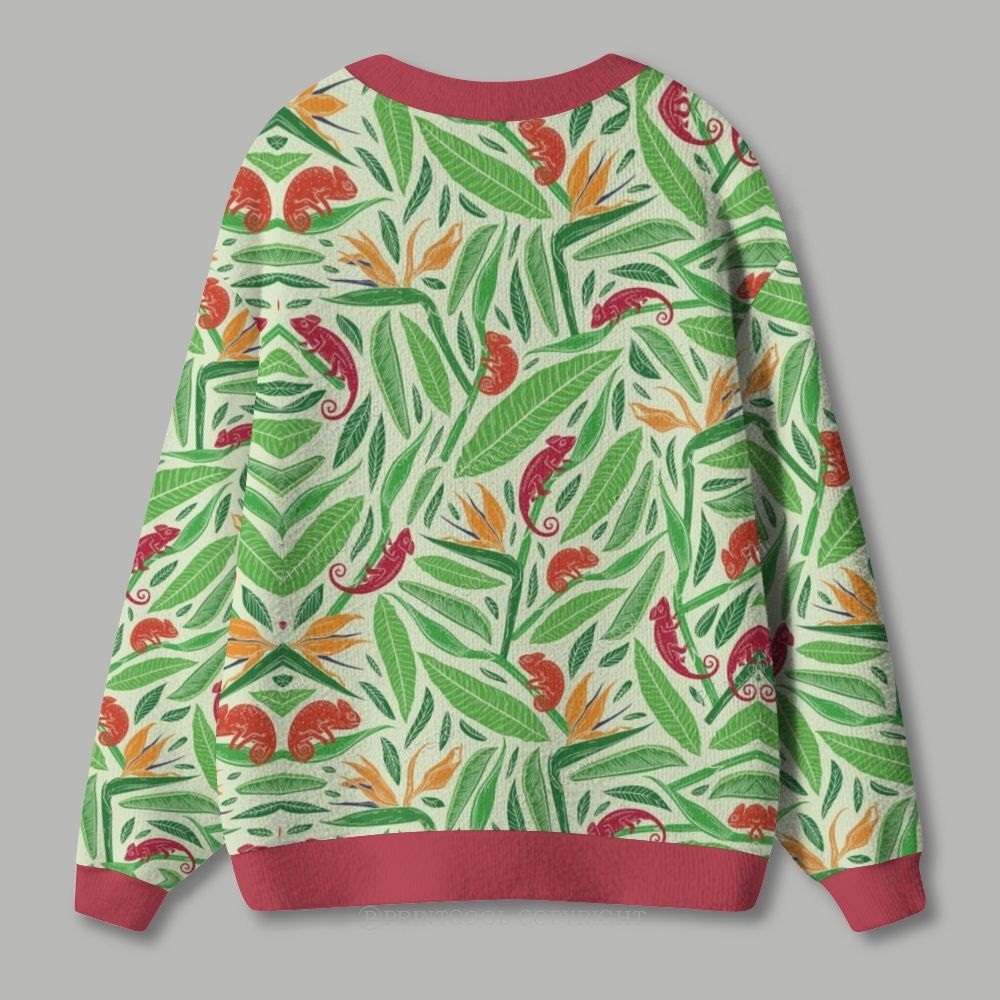 Green Leaves And Chameleons Ugly Cardigan Sweater
