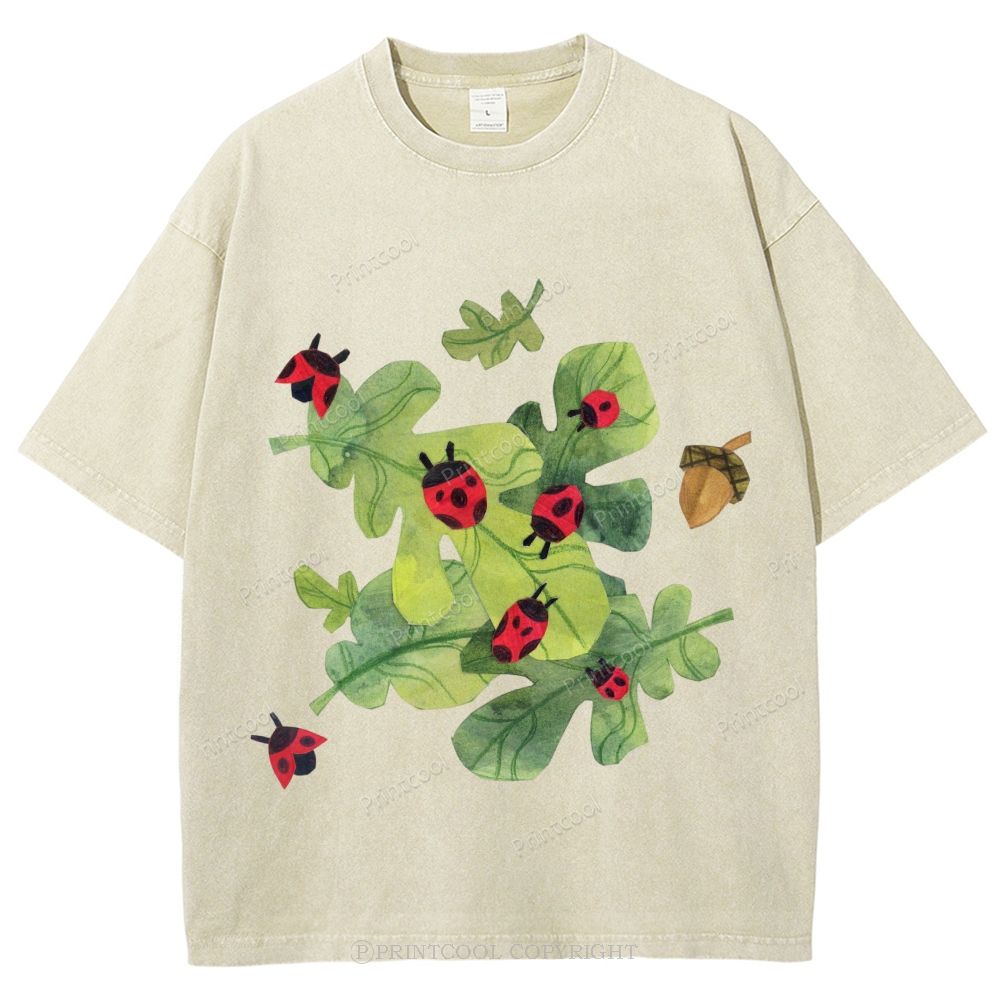 Cute Little Insects And Leaves Unisex Vintage Washed Tee
