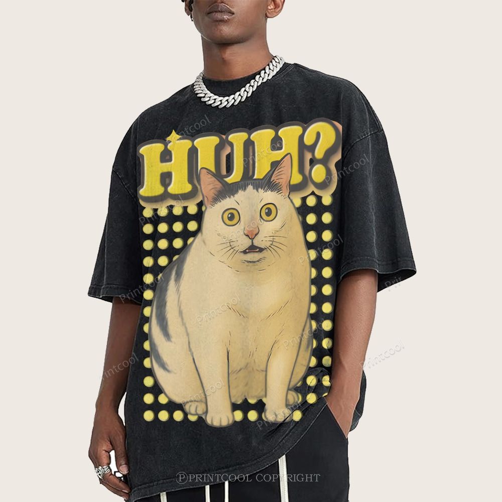 Vintage Huh Cat Meme Casual Washed Hoodie$52.99 USD
