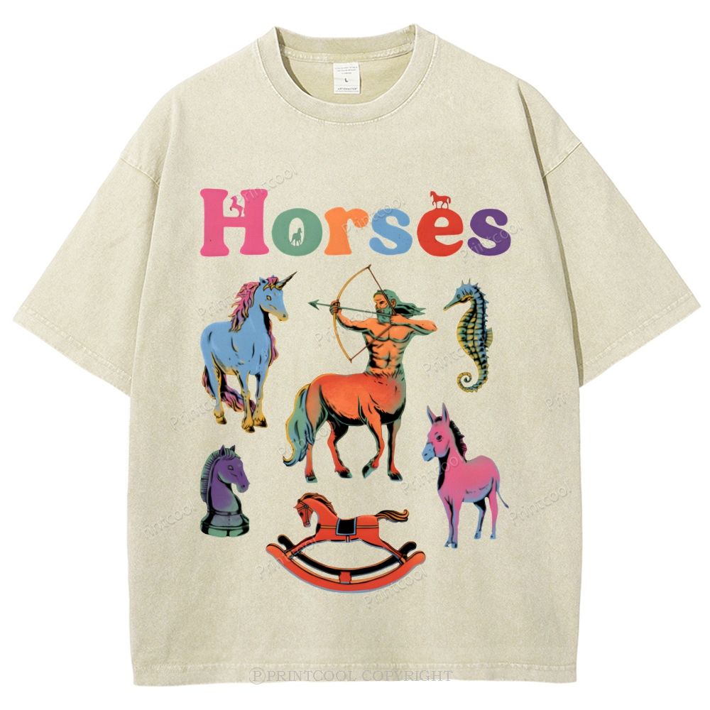 Horse Animal Illustrations Unisex Vintage Washed Tee