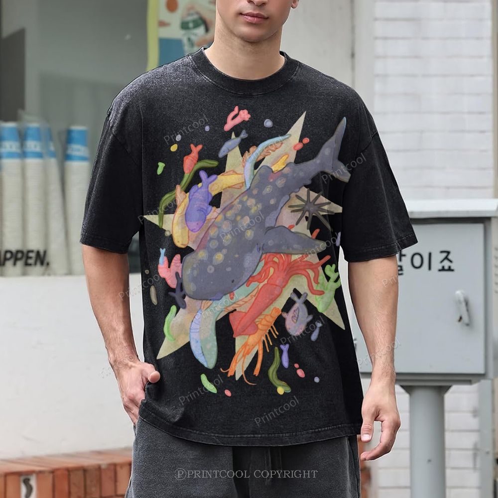 Illustrations Of Vibrant Schools Of Fish Unisex Vintage Washed Tee