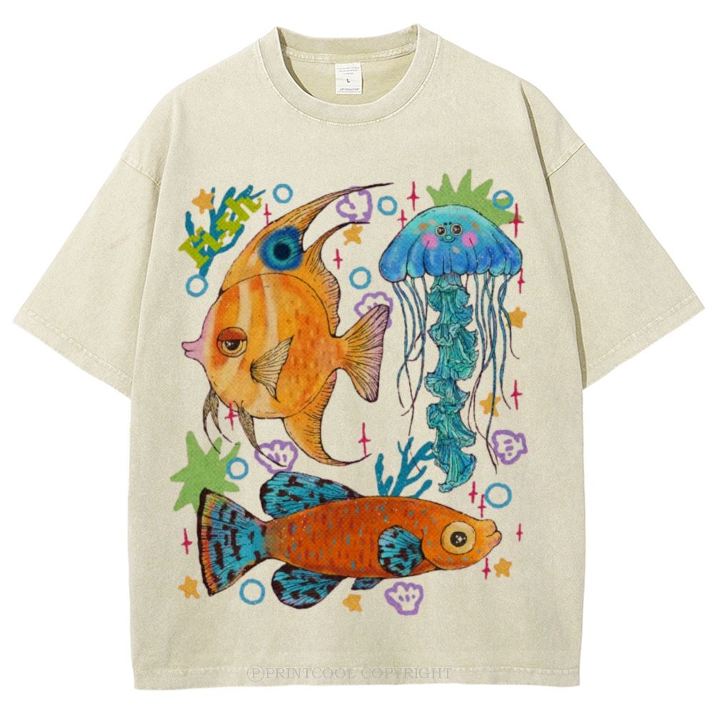 Cute Colorful Fish Unisex Vintage Washed Tee$29.99 USD