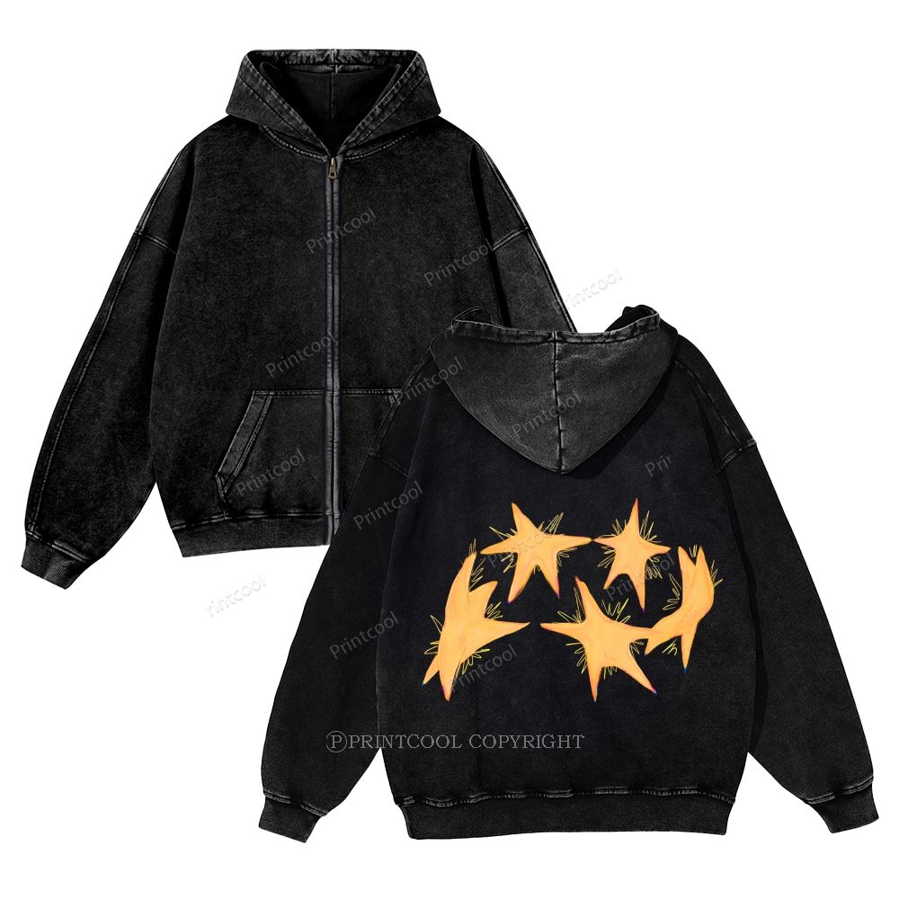 Circle Of Stars Unisex Washed Cotton Zip Up Hoodie