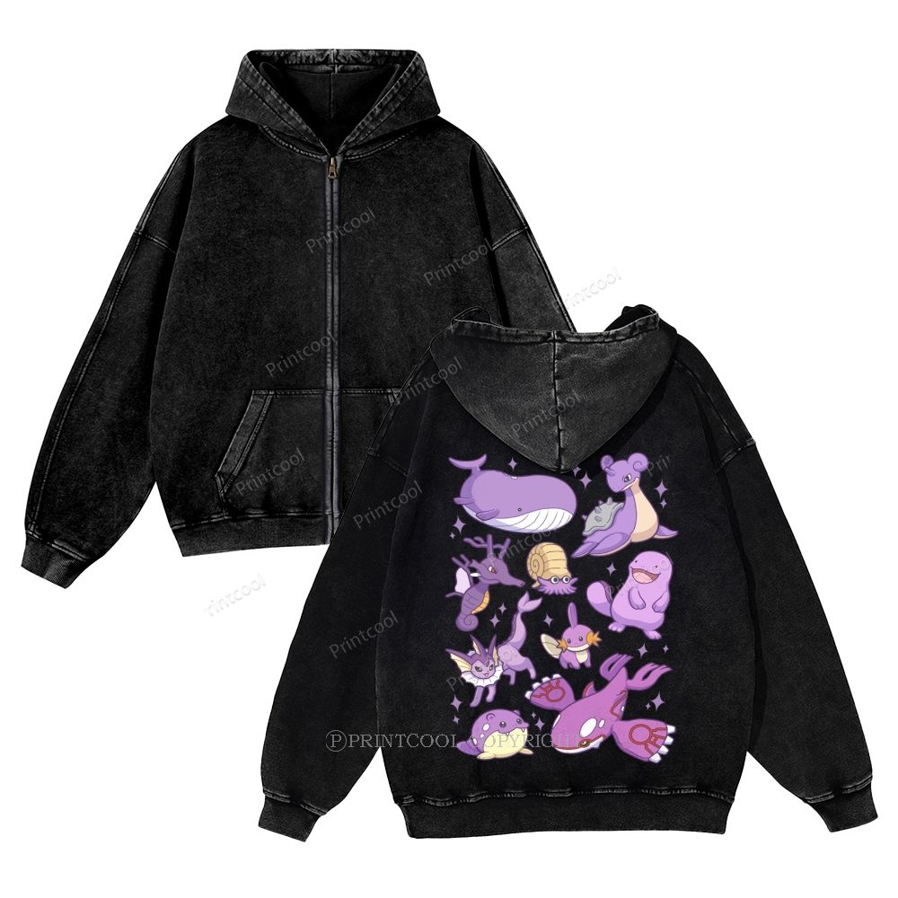 Purple Pokémon Group Unisex Washed Cotton Zip Up Hoodie