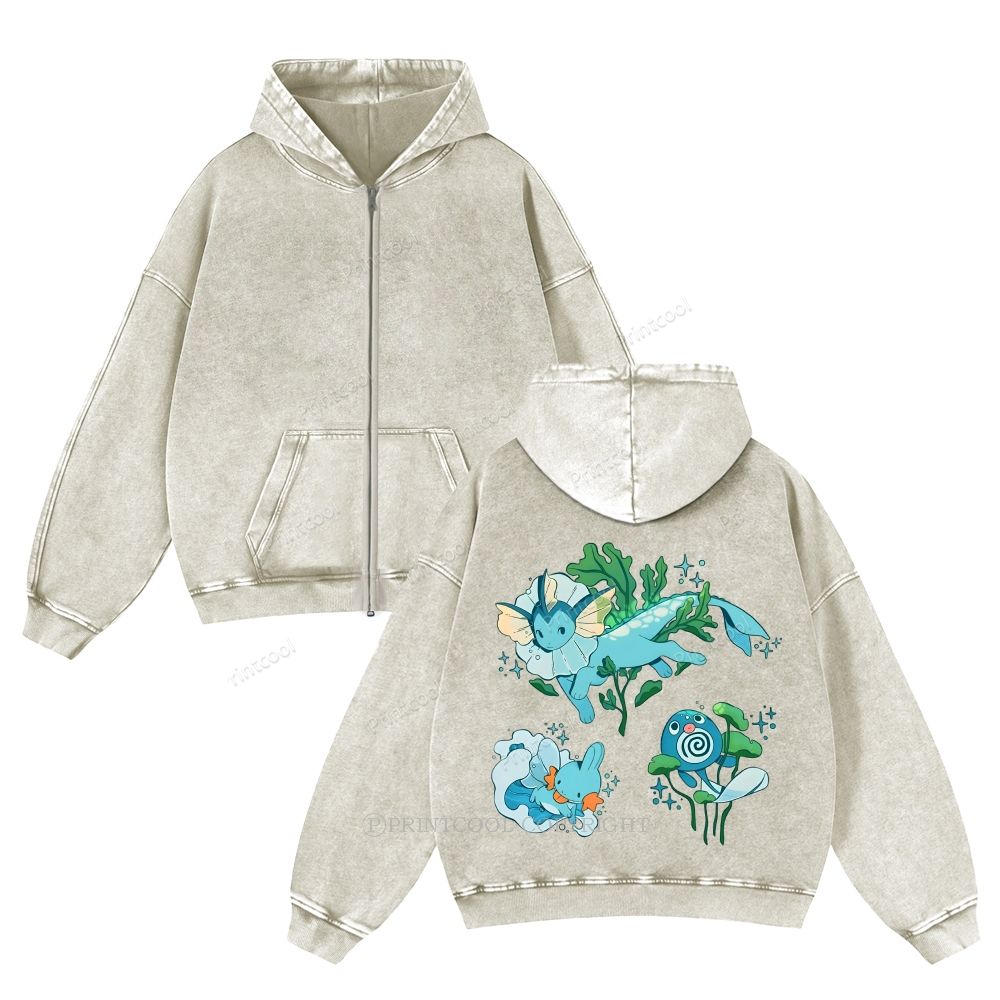 Pokémon Seaweed Star Unisex Washed Cotton Zip Up Hoodie