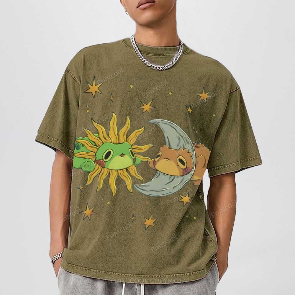 Abstract Frog Dialogue Unisex Vintage Washed Tee