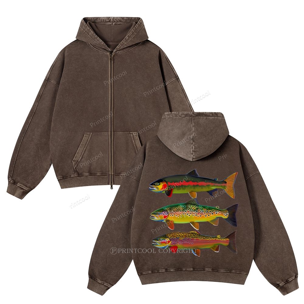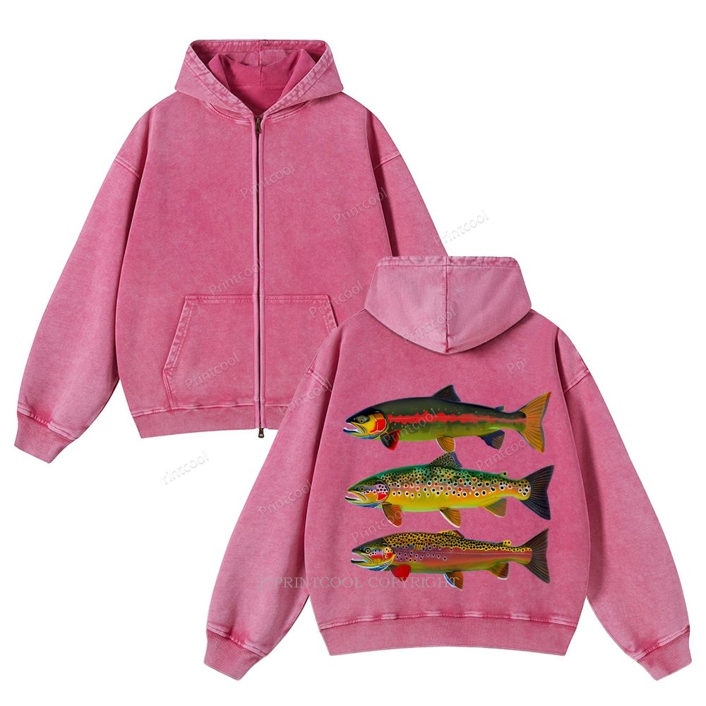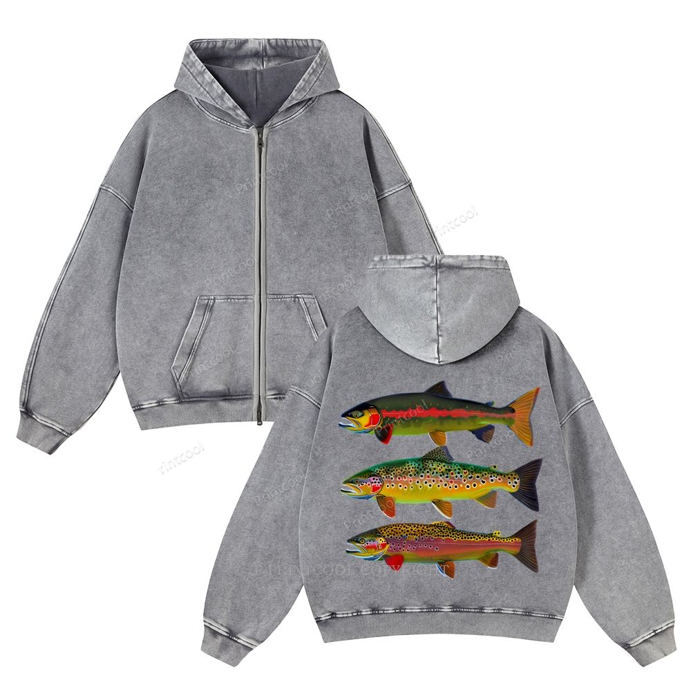 American Trout Unisex Washed Cotton Zip Up Hoodie